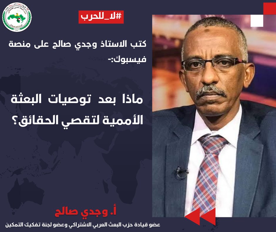 التوصيات التي أعلنت عنها البعثة الأممية لتقصي الحقائق في السودان هي مؤشر خطير لتطورات الأوضاع والح-رب في بلادنا .