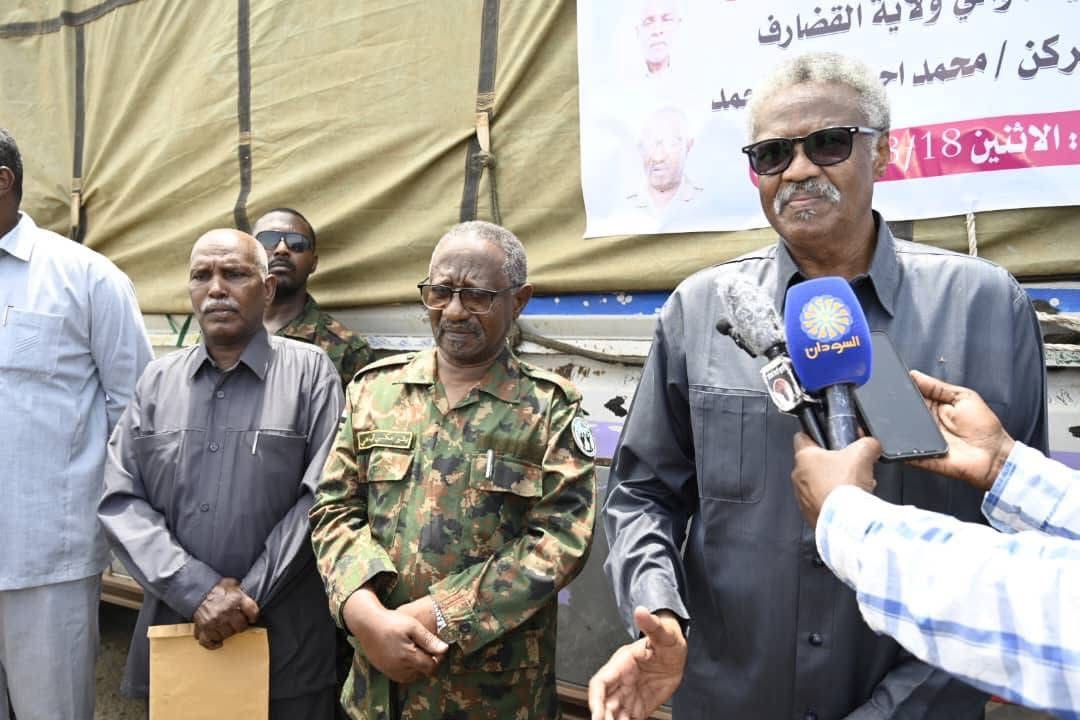 وكان في وداع القافلة بامانة الحكومة والي القضارف المكلف الفريق الركن محمد احمد حسن والفريق الركن بشير مكي الباهي رئيس المقاومة الشعبية بالبلاد بجانب رئيس المقاومة بالولاية واعضاء حكومة وأمن الولاية وعدد من القيادات .