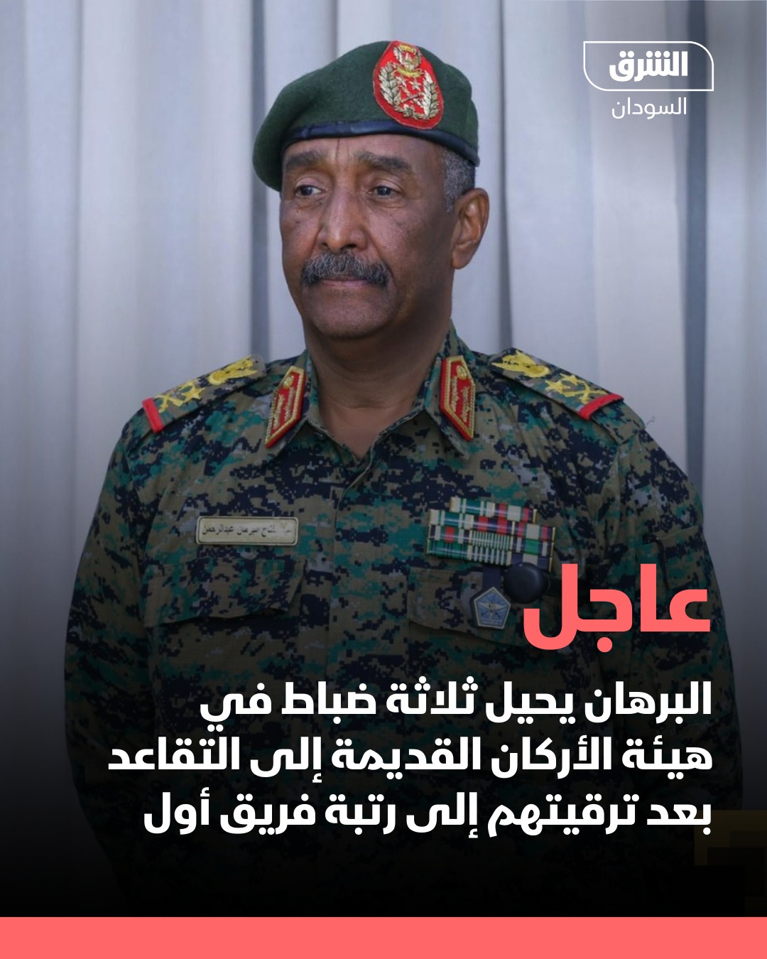 قناة الشرق البرهان يحيل ثلاثة ضباط في هيئة الأركان القديمة إلى التقاعد بعد ترقيتهم إلى رتبة… By null Published August 18, 2025 Share SHARE Facebook Twitter Pinterest LinkedIn[ad_1] البرهان يحيل ثلاثة ضباط في هيئة الأركان القديمة إلى التقاعد بعد ترقيتهم إلى رتبة فريق أول #الشرق_السودان [ad_2] Source Facebook Twitter Pinterest LinkedIn Share This Article Facebook Twitter Email Print Previous Article من ولاية غرب دارفور.. القائد الميداني في مليشيا الدعم السريع إدريس حسن٬ يهدد با… Next Article حكومة الخرطوم تُلزم باستخراج شهادة “لمن يهمه الأمر” من النيابة وتصريح من الاستخب… Leave a Comment Leave a Reply Cancel replyYour email address will not be published. Required fields are marked *Comment * Name * Email * Website Save my name, email, and website in this browser for the next time I comment. Δ SearchSearchRecent Postsأكرمنا الله صباح اليوم الأحد بلقاء إخوةٍ كرام، على ضفة النيل الأزرق، حيث شاي الش… أعلن بنك السودان المركزي في منشور إدارة السياسات رقم (2025/15) رفع الاحتكار عن ا… ندوة بعنوان: القانون الدولي والسيادة الوطنية قراءة في موقف السودان من لجنة تقصي … والي نهر النيل تستقبل وزير الموارد البشرية والرعاية الاجتماعية الوزير يشيد بالأ… كامل ادريس: رئيس اللجنة السياسية لمؤسسات الدولة السودانية. Recent CommentsNo comments to show.