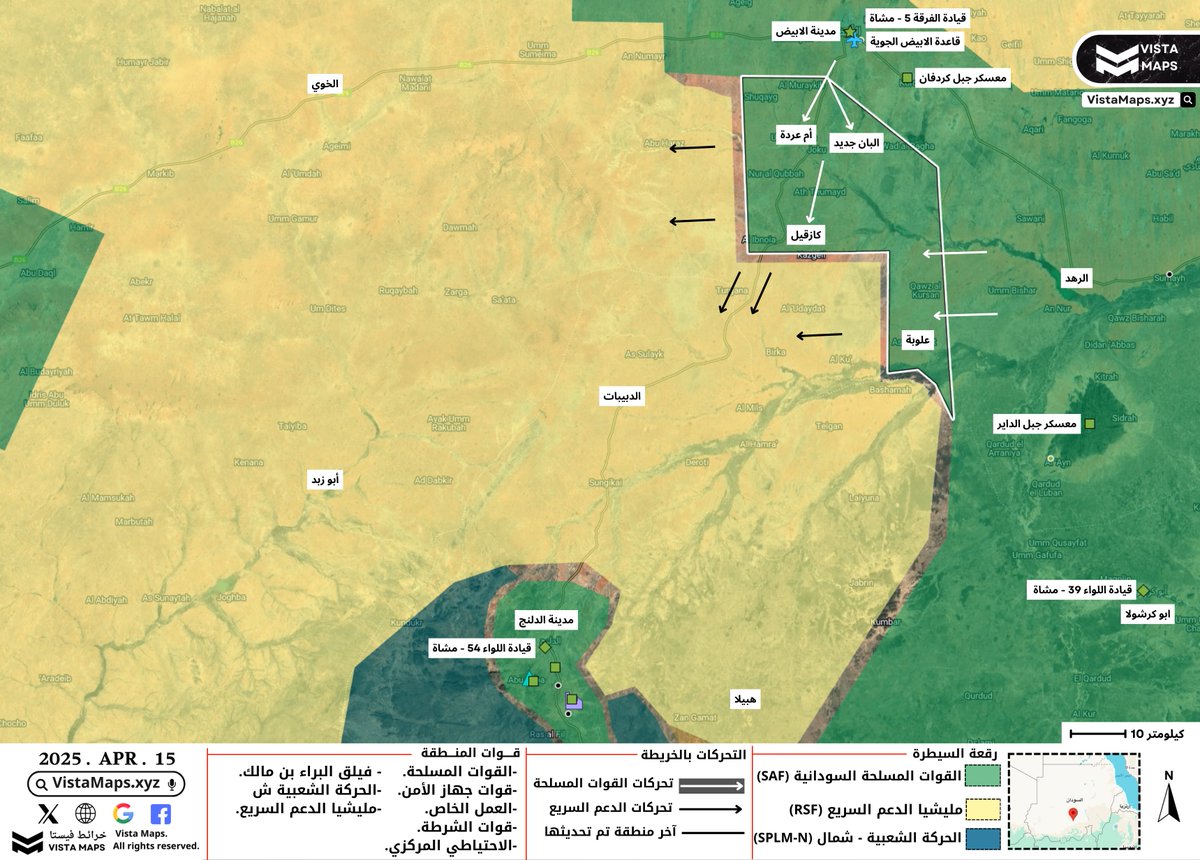 – المعارك ما تزال مستمرة في ظل تقدم القوات المسلحة، التي تهدف إلى فك الحصار عن مدينة الدلنج وقيادة اللواء 54 مشاة بعد تجاوز منطقة الدبيبات.