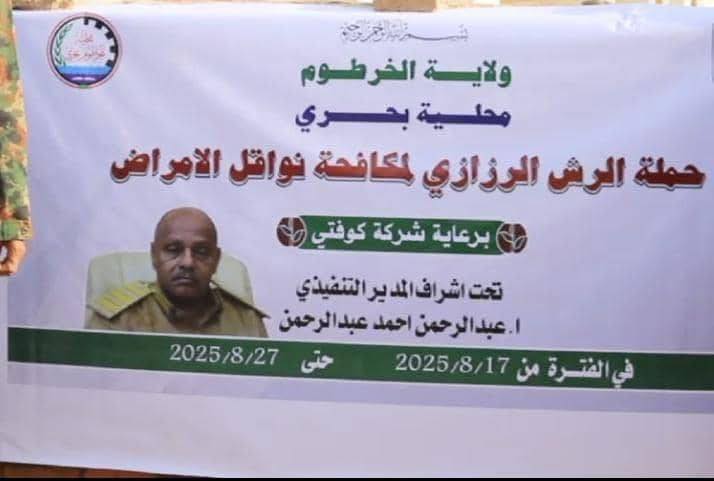بحري 18-8-2025 (سونا) بدأت اليوم الحملة الكبرى لمكافحة نواقل الأمراض بمحلية بحري، وذلك بعد معاناة المواطنين من انتشار الباعوض بكثافة وذلك برعاية كريمة من شركة كوفتي وبإشراف المدير التنفيذي لمحلية بحري الأستاذ عبدالرحمن أحمد عبدالرحمن .