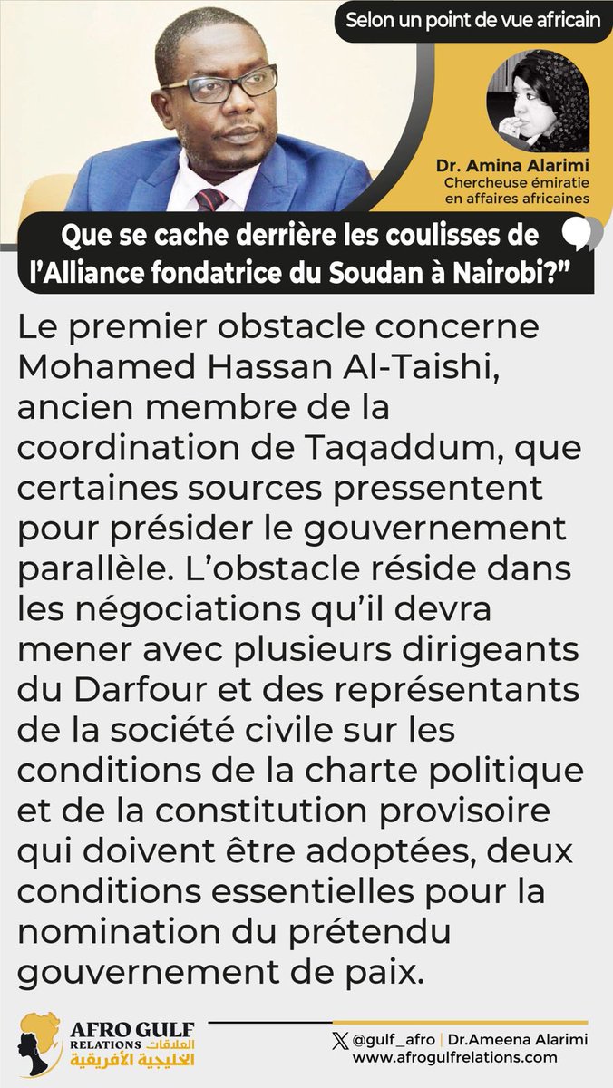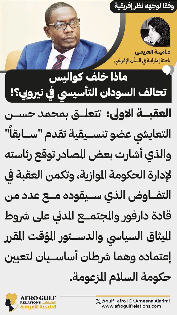 إستمراراً لحالة التردي والإفلاس السياسي المرتبط بالإفلاس الأخلاقي الذي يحيط بقيادة مليشيا #الدعم_السريع منذ أبريل ٢٠٢٣ تواصل المليشيا هرجها ومرجها في أروقة تحالف السودان التأسيسي في #نيروبي والذي لم يحضره ممثل إقليمي ولا دولي واحد في دلالة على أنه جاء كرد فعل إنتقامي على تنامي وتيرة الدعم الشعبي للقوات المسلحة السودانية بعد نجاحها في بسط سيطرتها على معظم المناطق الإستراتيجية وقرب تحرير أراضي البلاد كاملة.وقطعاً هي ترى ما لا تراه المؤسسة الرئاسية، وبالتالي هي مدركة للنتائج المترتبة بقبول حكومة ترأسها مليشيا على مرمى حجر منها تماماً كإدراكها للتقاطعات التي حالت بينها وبين جوارها الإقليمي منذ سبعينات القرن الماضي حتى الأن.⏪️ يتبع