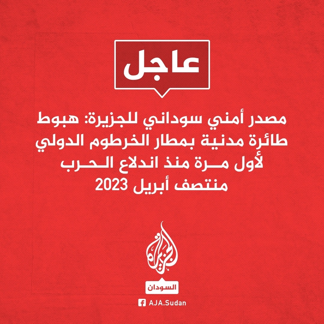 عاجل | مصدر أمني سوداني للجزيرة: هبوط طائرة مدنية بمطار #الخرطوم الدولي لأول مرة…