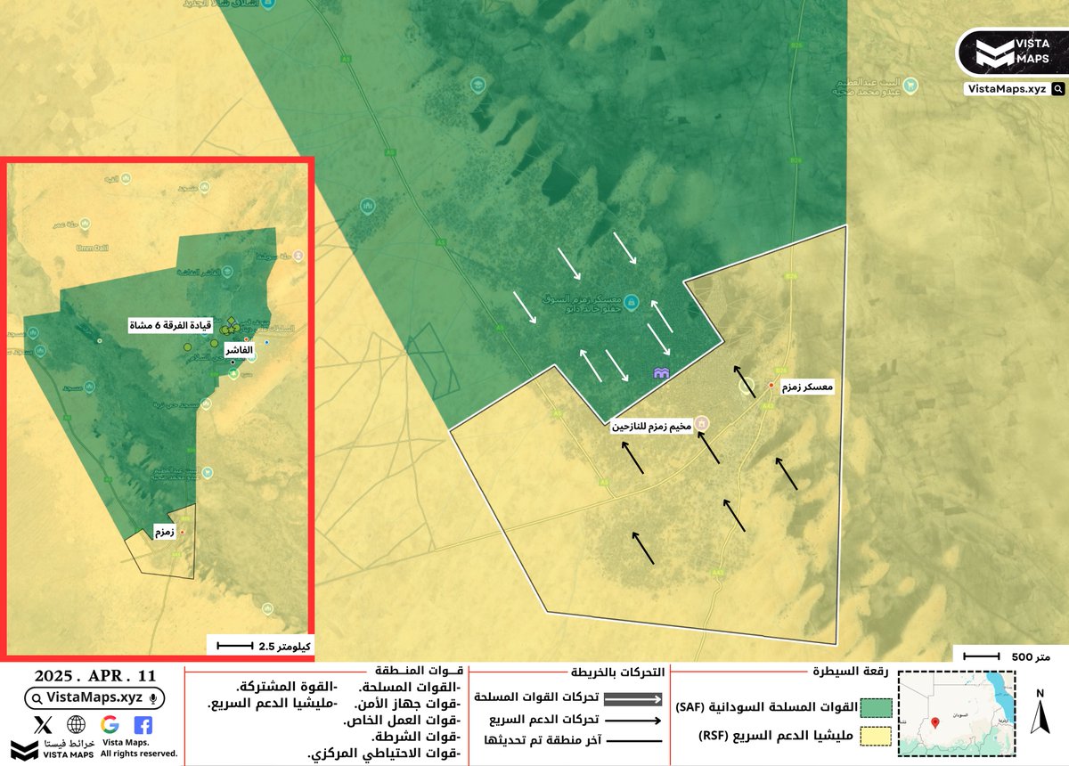 – منذ صباح اليوم شنت مليشيا الدعم السريع هجومًا واسعًا على مخيم زمزم للنازحين من الناحية الجنوبية، وتمكنت خلاله من السيطرة على أحد المعسكرات والجزء الجنوبي من مخيم النازحين.