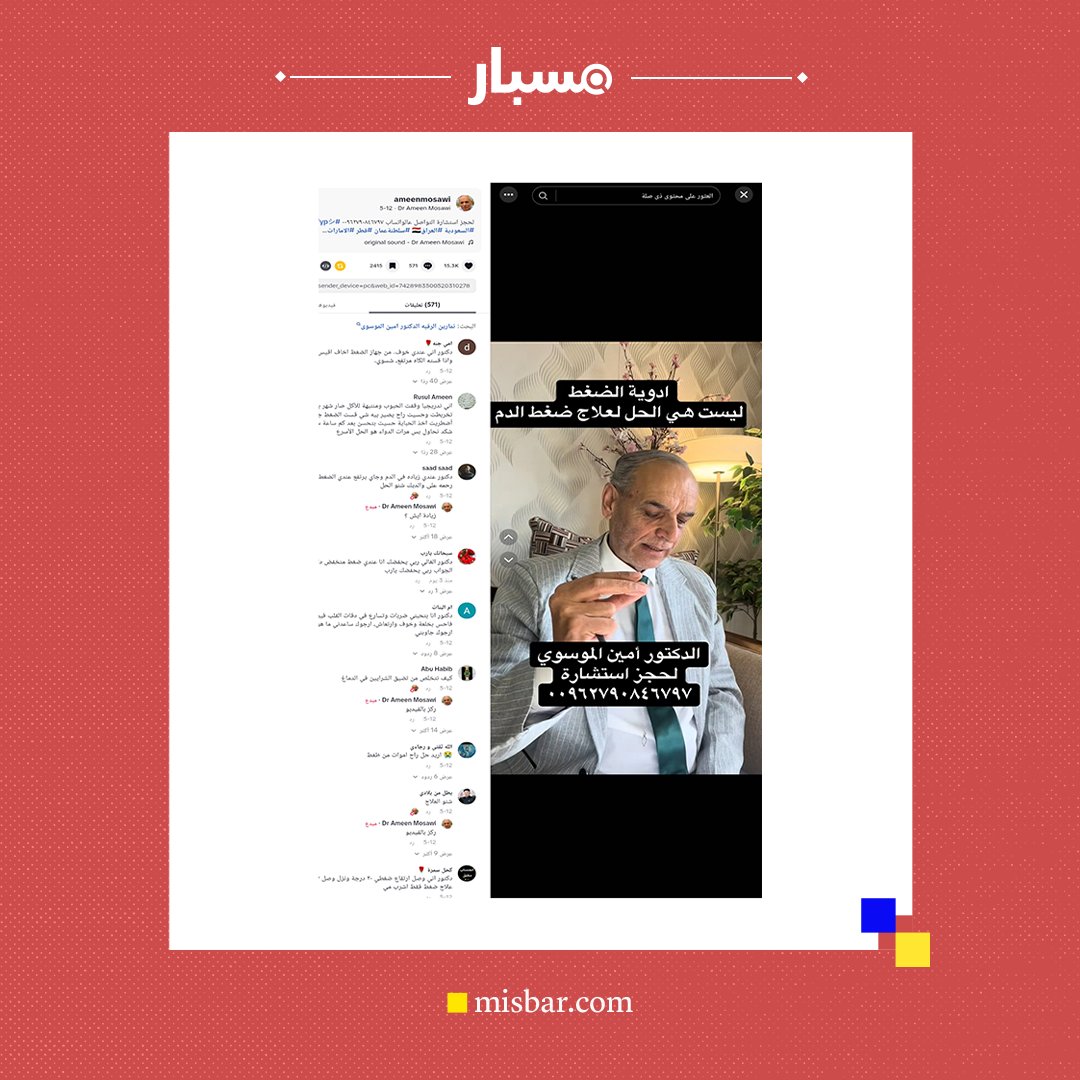 🟦 في مقطع فيديو نشره د. أمين الموسوي، وحصد أكثر من 862 ألف مشاهدة و4 آلاف مشاركة، ادّعى أن ارتفاع ضغط الدم ليس مرضًا بحد ذاته، بل استجابة تعويضية من الجسم نتيجة تضيق الشرايين الدقيقة ونقص الأكسجين. ويضيف أن أدوية الضغط لا تعالج السبب الجذري، وأن الحل الحقيقي يكمن في معالجة الالتهابات المزمنة والتوتر، بالإضافة إلى تقليل الإفراط في تناول السكريات والنشويات.