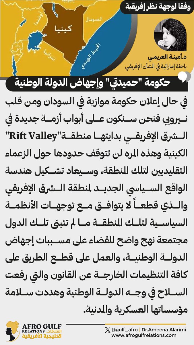 أرى من الضروري دراسة الموقف الكيني الداعم لمليشيا #الدعم_السريع والتعرف على رؤي…