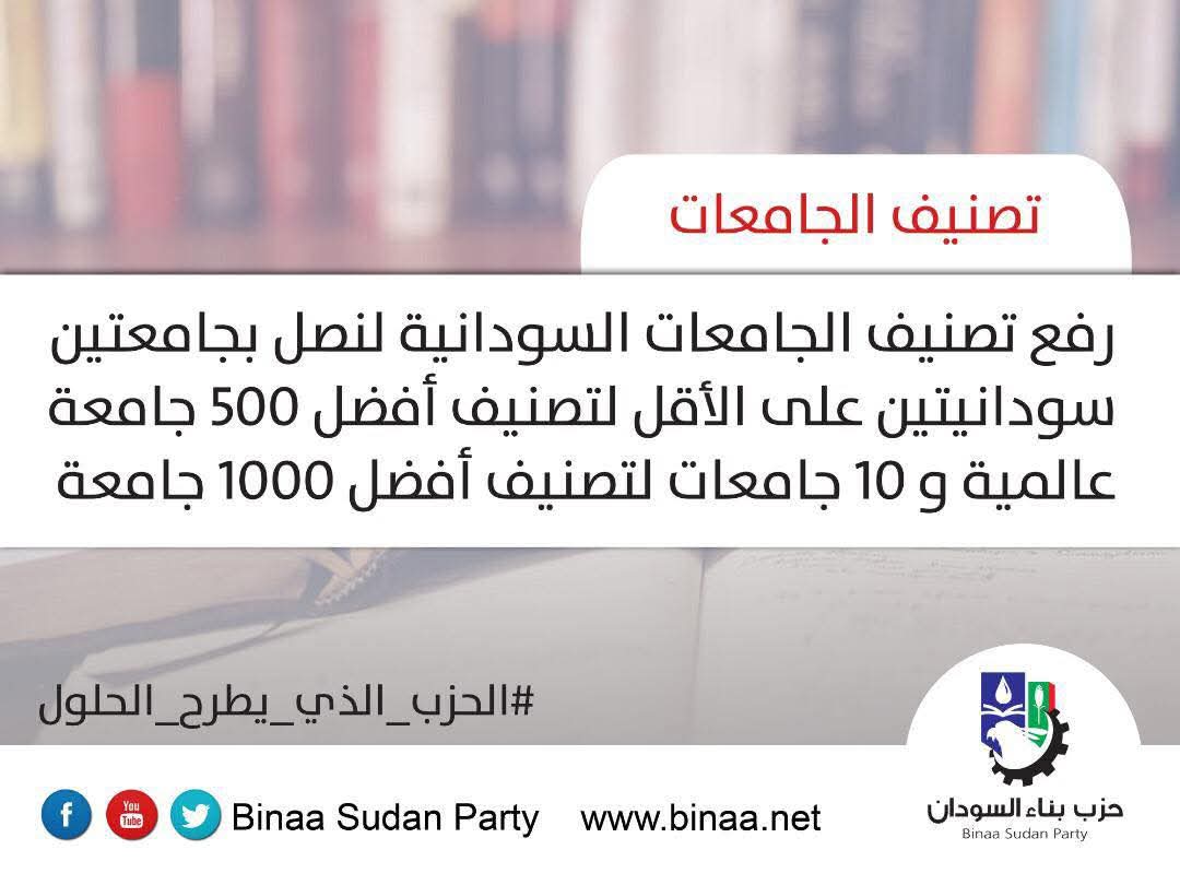 ليصبح السودان ضمن افضل خمس دول #افريقية خلال ١٠ سنوات في مجال #التعليم و #البحث_العلمي سنعمل علي رفع تصنيف #الجامعات_السودانية عالميا.