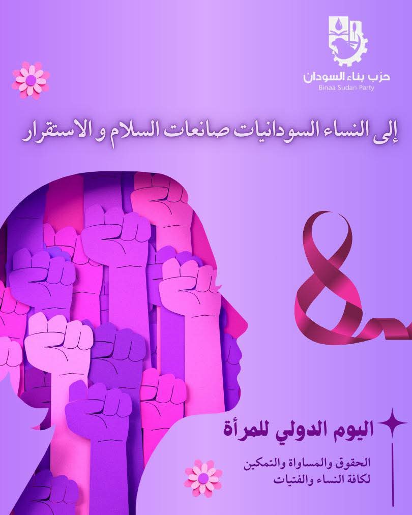 في هذا اليوم العالمي للمرأة، نُجدد التزامنا بالعمل من أجل سودان يكون للمرأة فيه دورها المستحق في القيادة وصناعة القرار. كل عام وأنتن أقوى، وأكثر إصرارًا، وأعمق تأثيرًا.