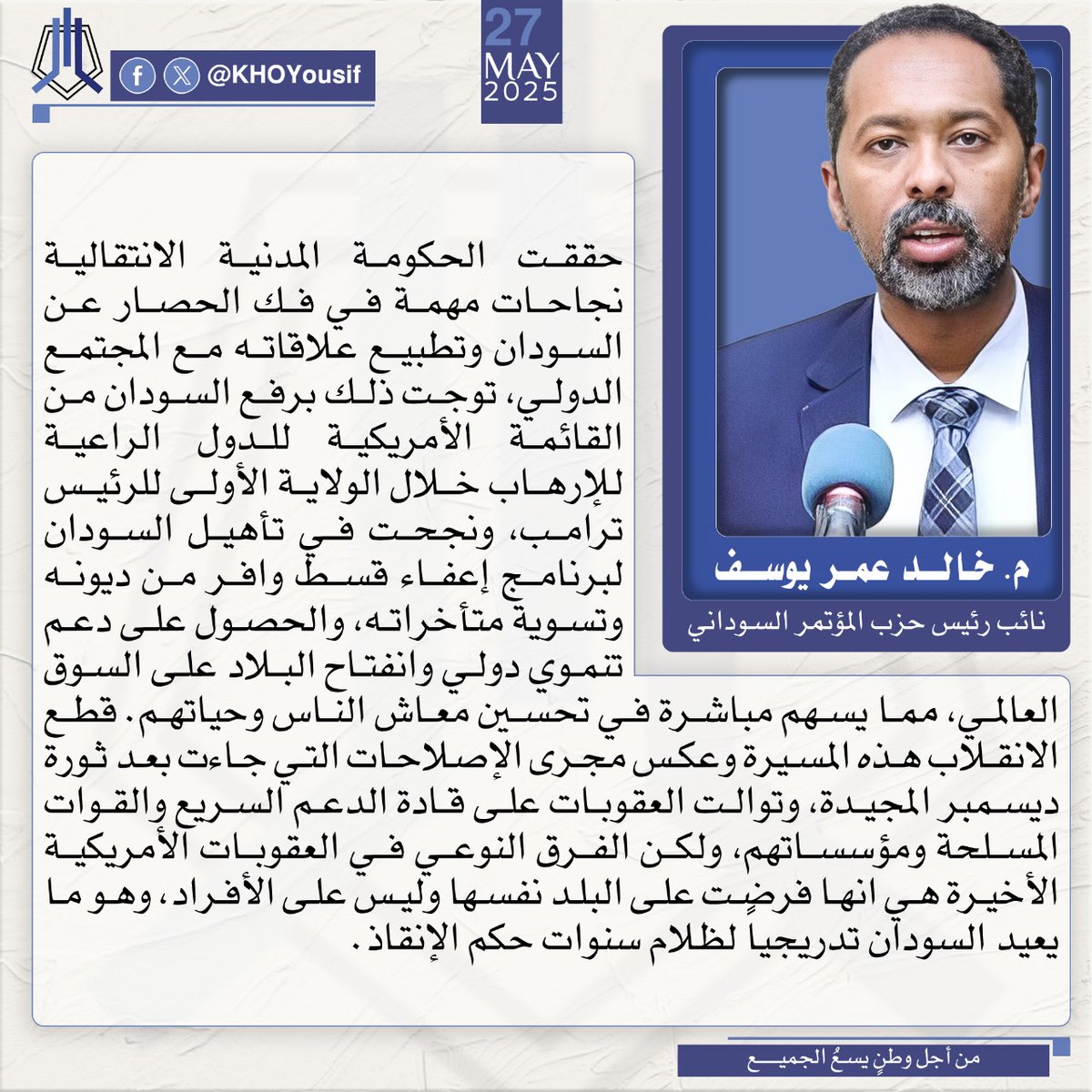 م.خالد عمر يوسف @KHOYousif نائب رئيس الحزب والقيادي في التحالف المدني الديمقراطي لقوى الثورة “صمود”
