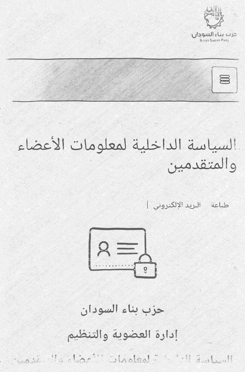 في حالة انضمامك إلى حزب بناء السودان بتكون معلوماتك الشخصية الحتقدمها محمية بسياسة خصوصية المعلومات وحيتم تداولها مع المحافظة على سريتها وحتستخدم ضمن ضوابط مشددة حتى داخل إدارات حزب بناء السودان ، ممكن تتعرف على تفاصيل السياسة الداخلية لمعلومات الأعضاء والمتقدمين من خلال زيارة موقعنا على الرابط