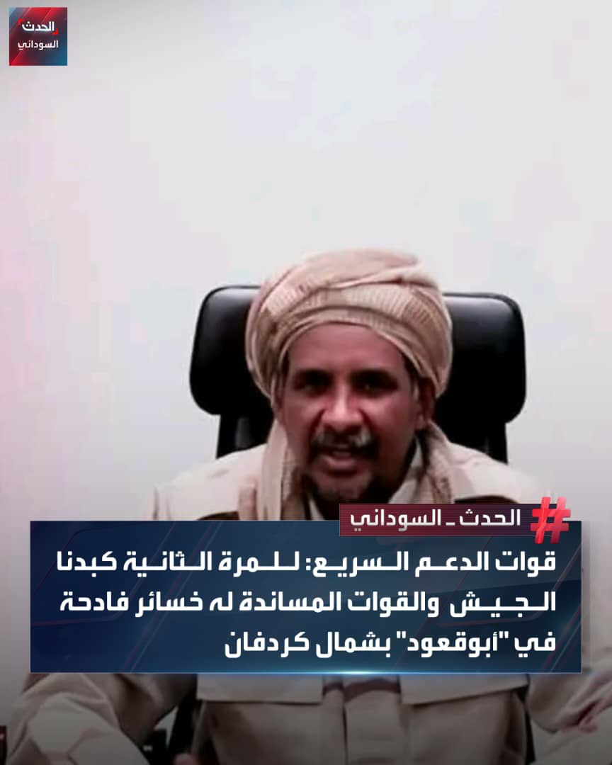 قالت قوات الدعم السريع إنها كبدت الجيش والقوات المساندة له خسائر فادحة لليوم الثاني على التوالي، قرب منطقة “أبوقعود” بشمال كردفان.