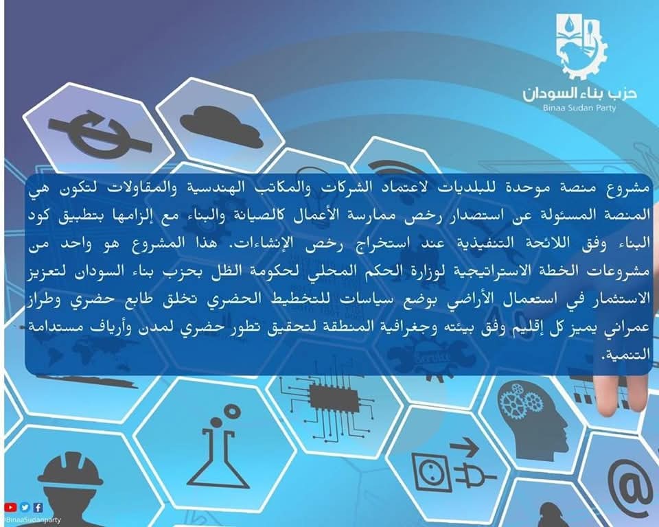 مشروع منصة موحدة للبلديات لاعتماد الشركات والمكاتب الهندسية والمقاولات هو واحد من مئات المشاريع لجعل السودان من أفضل الدول في إفريقيا