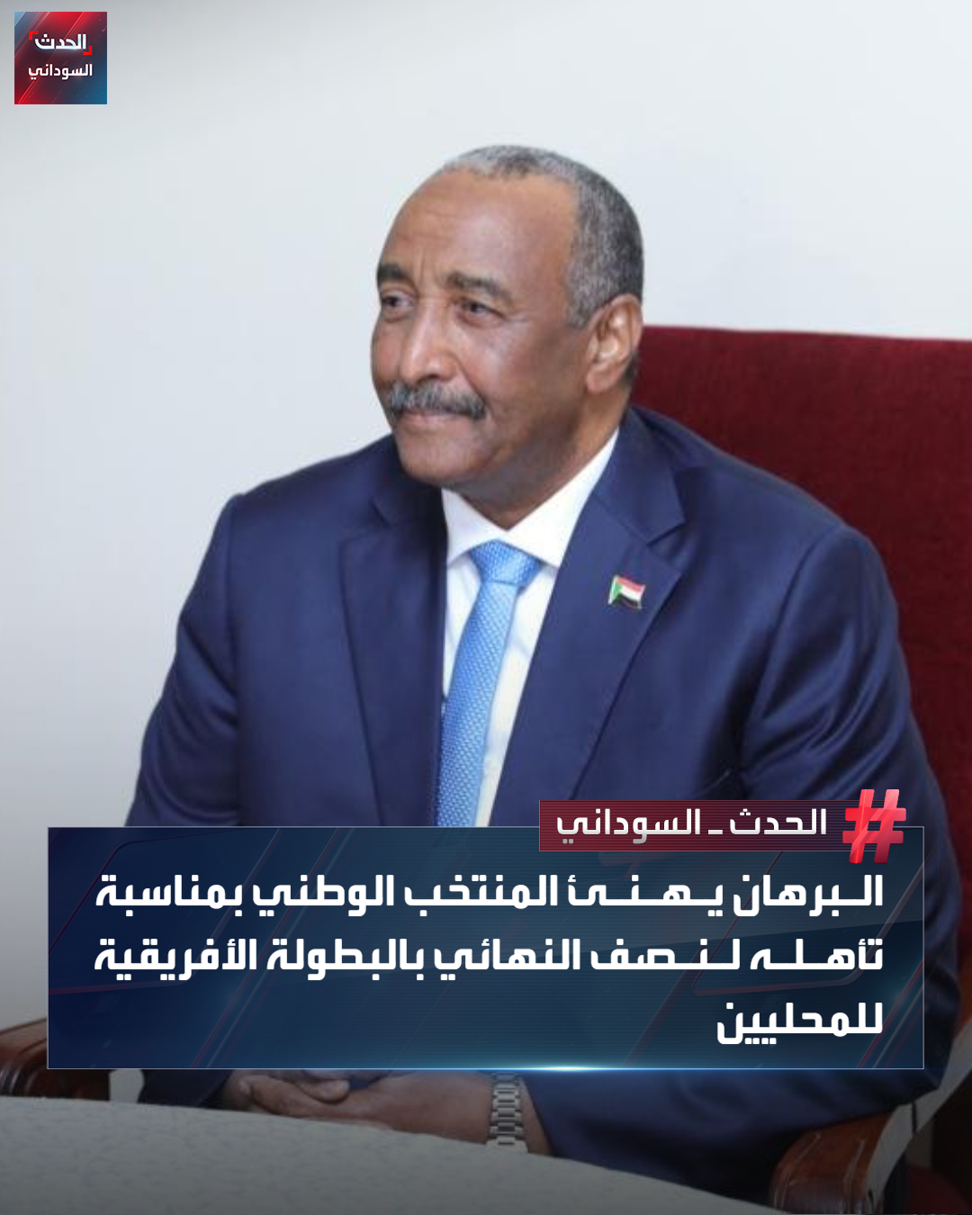 هنأ رئيس مجلس السيادة عبدالفتاح البرهان،المنتخب الوطني بمناسبة تأهله لنصف النهائ…