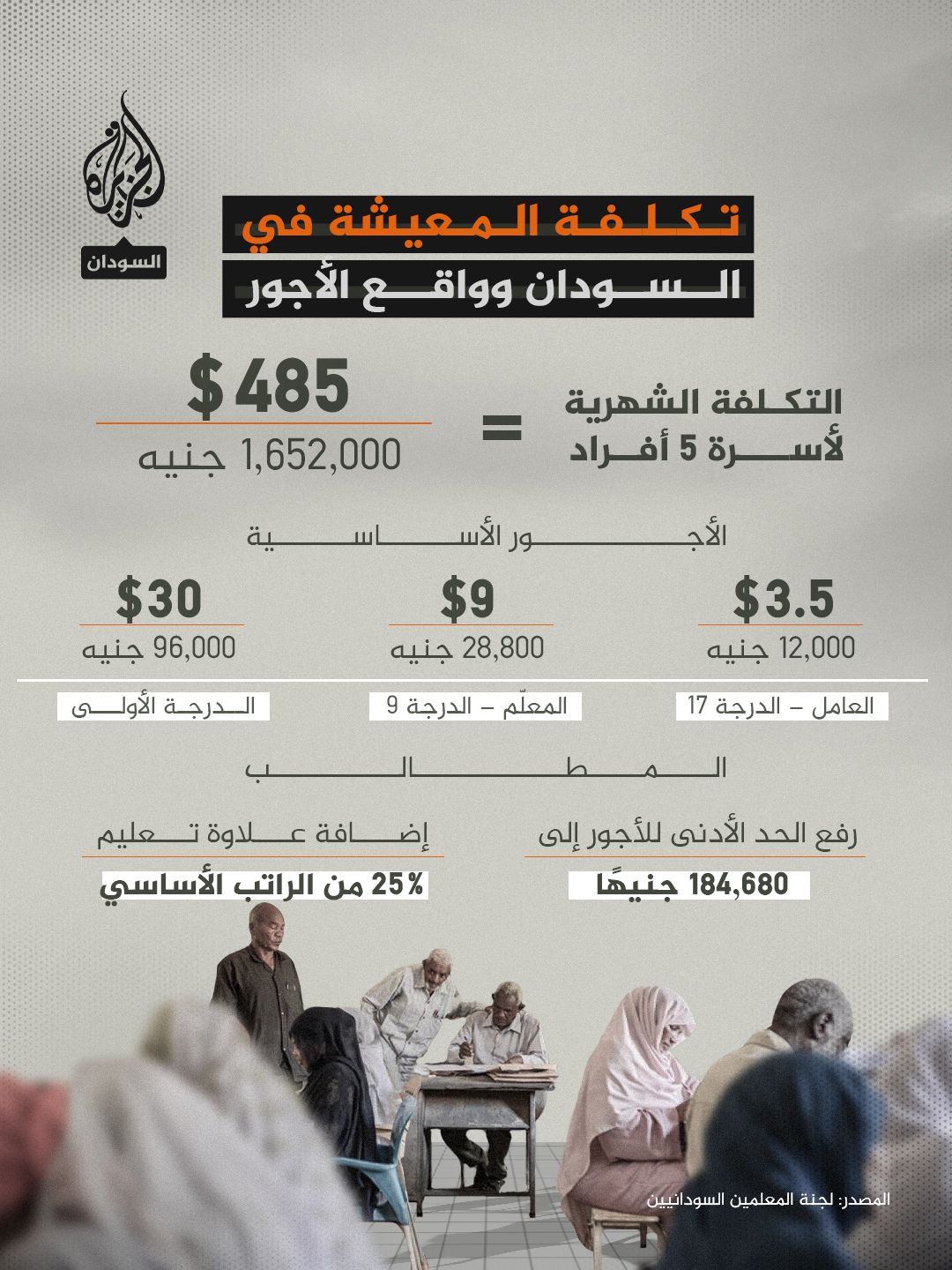 لجنة المعلمين السودانيين: جميع العاملين في البلاد تحت خط الفقر المدقع وغير قادرين على تلبية الحد الأدنى من متطلبات الحياة