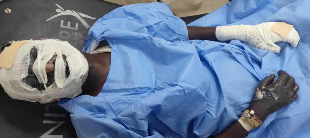 كسر في رجل و إصابة في الرجل لآخر ، بالإضافة لحرق في مناطق مختلفة من جسمو.