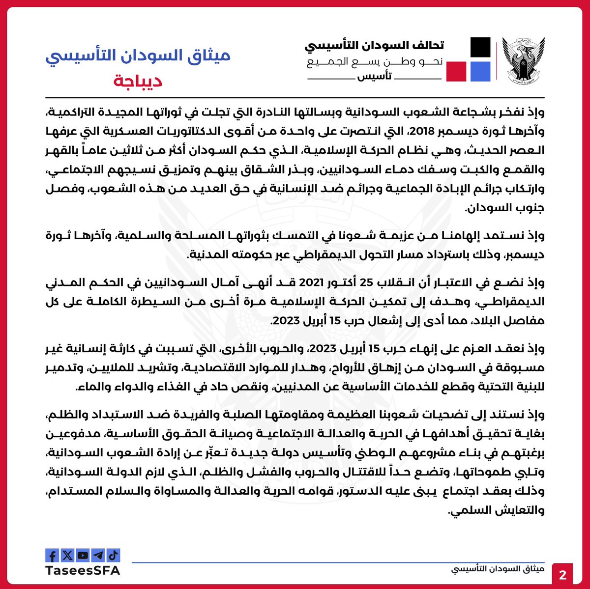 نص ميثاق تحالف السودان التأسيسي #عرس_السودان #تحالف_السودان_التاسيسي #سودان_جديد…