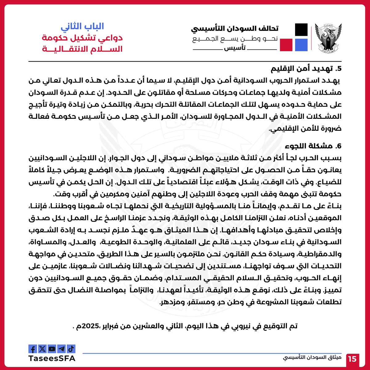 تحالف السودان التأسيسي تأسيس … By null Published August 25, 2025 Share SHARE Facebook Twitter Pinterest LinkedIn[ad_1] [ad_2] Source by تحالف السودان التأسيسي – (تأسيس) Facebook Twitter Pinterest LinkedIn Share This Article Facebook Twitter Email Print Previous Article شهدائنا ، للمطالبة بشعاراتها، التي لم تبارح مكانها بسبب التأمر الخارجي والداخلي … Next Article ندعوكم للمشاركة معنا في ندوة سياسية مفتوحة بعنوان: *قراءات في خطابات الحرب والس… Leave a Comment Leave a Reply Cancel replyYour email address will not be published. Required fields are marked *Comment * Name * Email * Website Save my name, email, and website in this browser for the next time I comment. Δ SearchSearchRecent Postsأكرمنا الله صباح اليوم الأحد بلقاء إخوةٍ كرام، على ضفة النيل الأزرق، حيث شاي الش… أعلن بنك السودان المركزي في منشور إدارة السياسات رقم (2025/15) رفع الاحتكار عن ا… ندوة بعنوان: القانون الدولي والسيادة الوطنية قراءة في موقف السودان من لجنة تقصي … والي نهر النيل تستقبل وزير الموارد البشرية والرعاية الاجتماعية الوزير يشيد بالأ… كامل ادريس: رئيس اللجنة السياسية لمؤسسات الدولة السودانية. Recent CommentsNo comments to show.