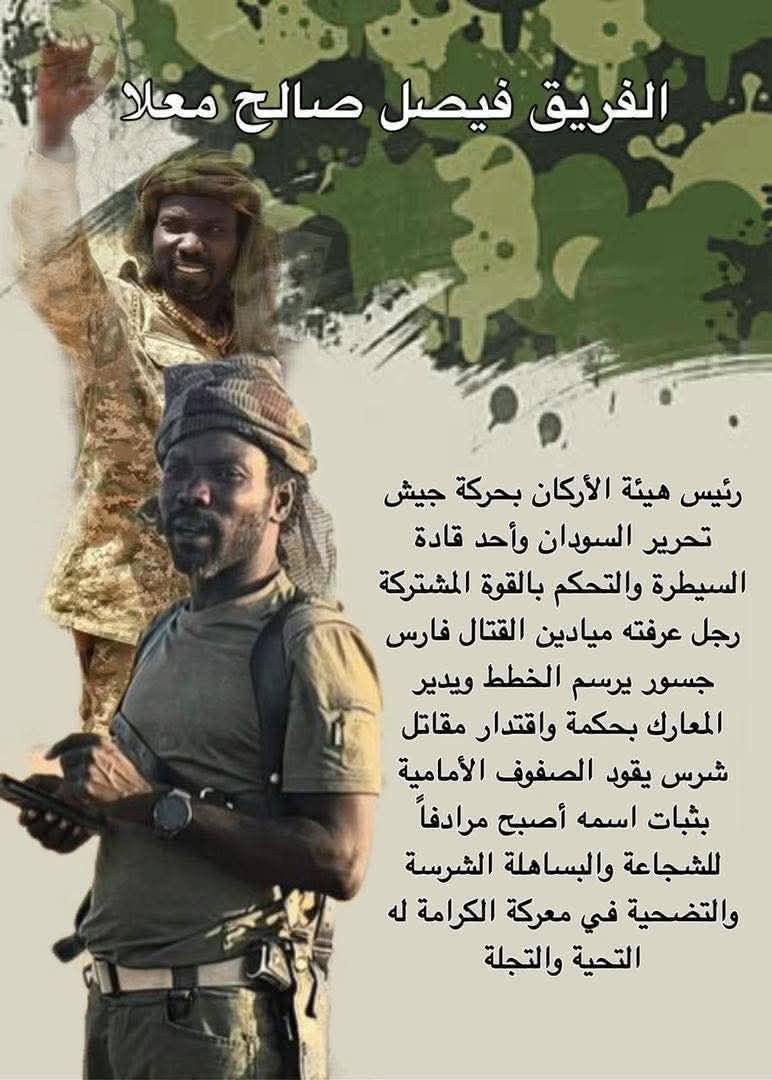 رئيس هيئة الأركان بحركة جيش تحرير السودان، وأحد أبرز قادة السيطرة والتحكم في القوة المشتركة، رجل خبرته ميادين القتال، وعرفته ساحات المعارك فارسًا جسورًا، يرسم الخطط بذكاء، ويدير المعارك بحكمة واقتدار.