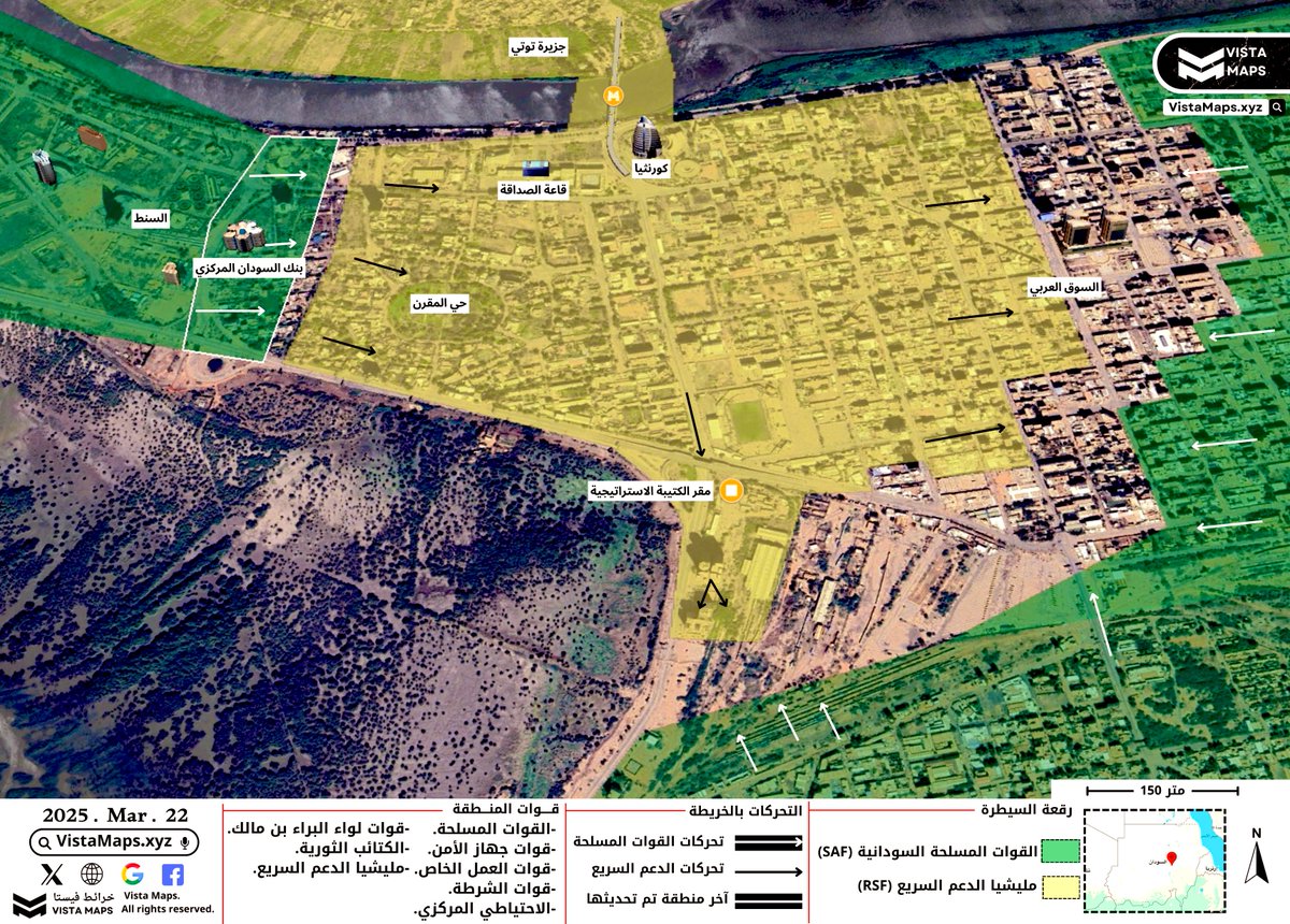 – انسحبت مليشيا الدعم السريع من بنك السودان المركزي الى عمق حي المقرن بعد خسارتها معركة الليلة الماضية، ومع توغل القوات المسلحة داخل الحي يزداد الضغط على المليشيا مما قد يدفعها إلى الانسحاب نحو جزيرة توتي كملاذ أخير.