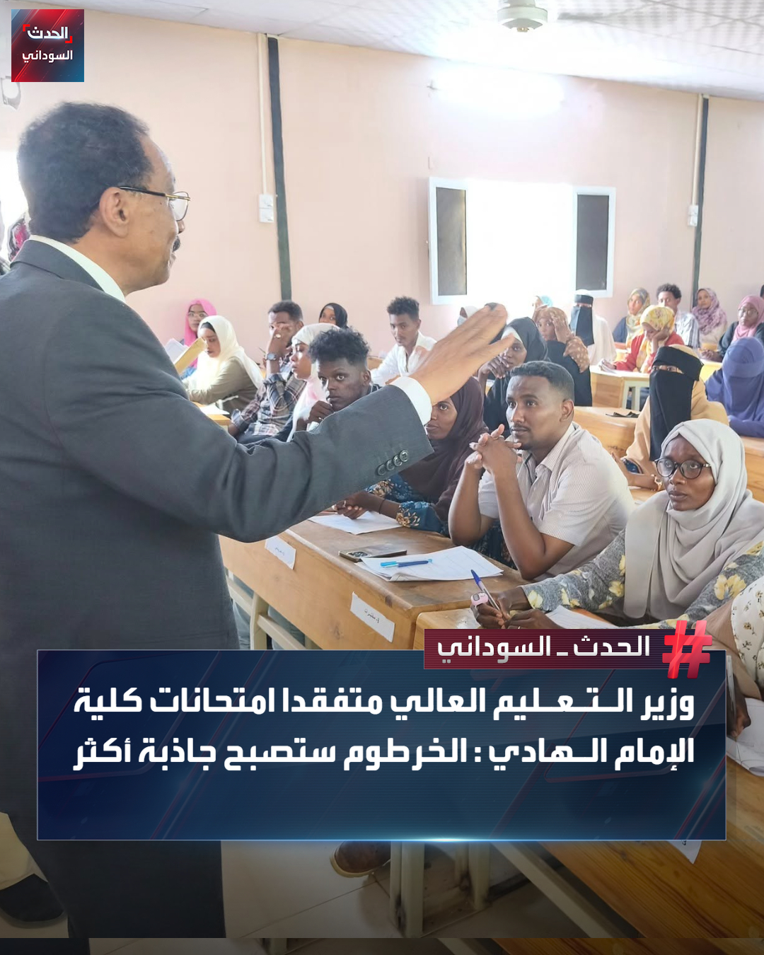 تفقد وزير التعليم العالي أحمد مضوي موسى، سير امتحانات كلية الإمام الهادي بمدينة …