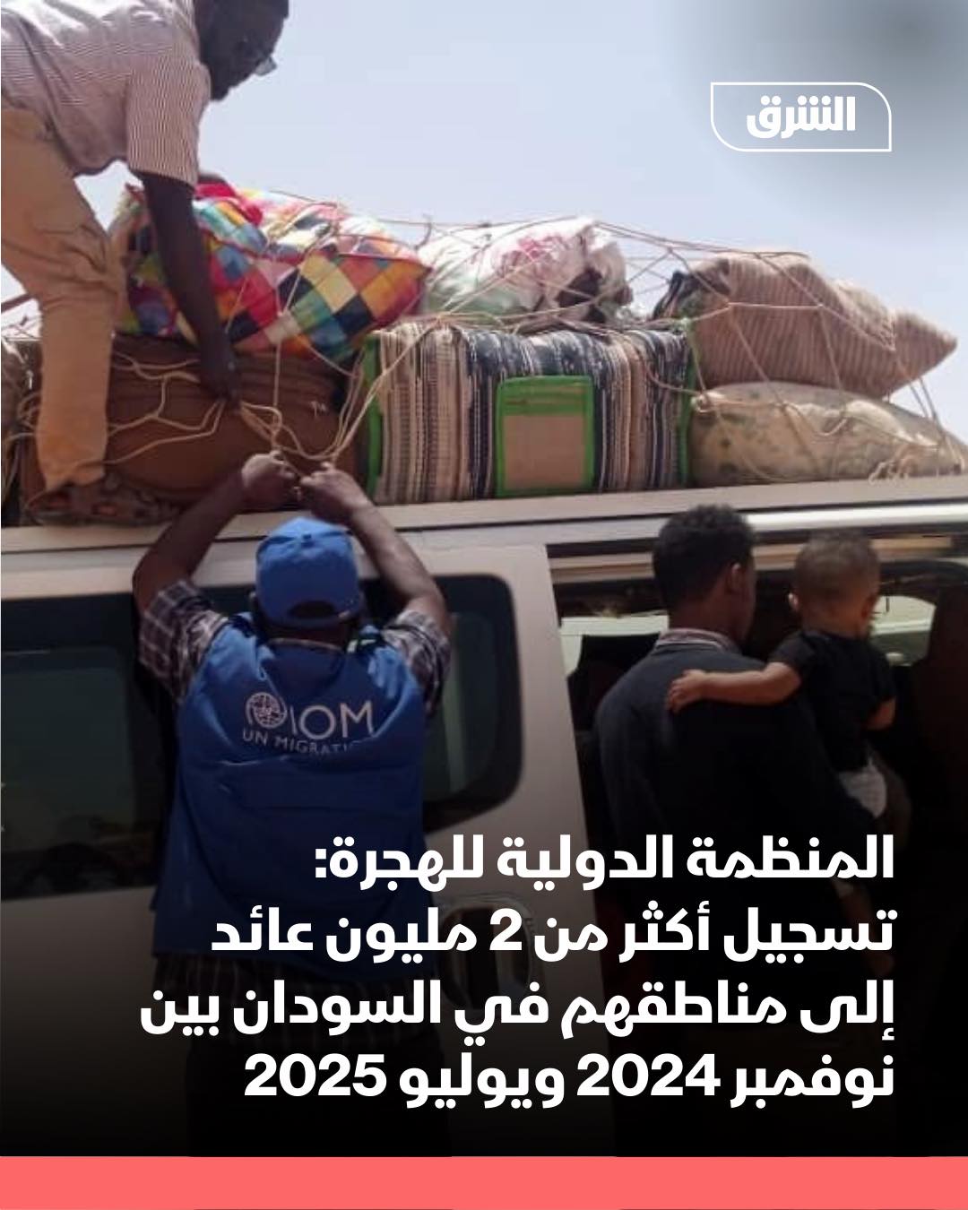 – تسجيل أكثر من 2 مليون عائد إلى مناطقهم في السودان بين نوفمبر 2024 ويوليو 2025