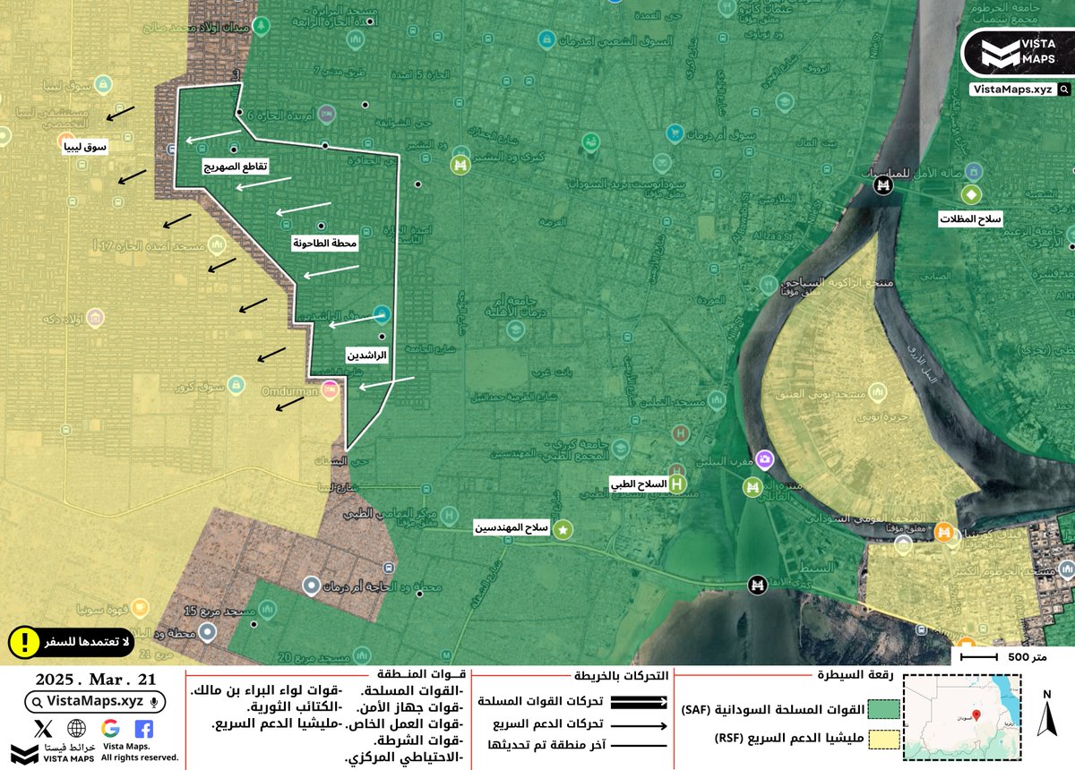 – فيما انسحبت مليشيا الدعم السريع نحو سوق ليبيا بعد أن طاردتها القوة التي سيطرت على تقاطع الصهريج.