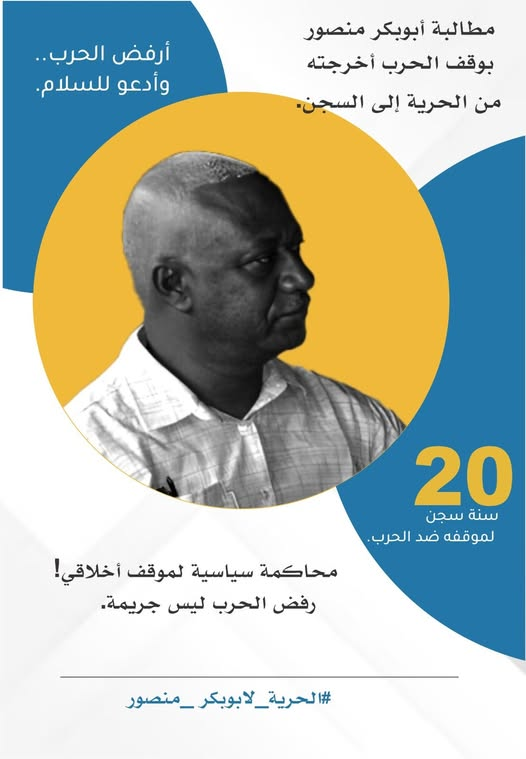 حزب المؤتمر السوداني مطالبة أبوبكر منصور بوقف الحرب أخرجته من الحرية إلى السجن. محاكمة سياسية لموقف أ… By null Published August 26, 2025 Share SHARE Facebook Twitter Pinterest LinkedIn[ad_1] مطالبة أبوبكر منصور بوقف الحرب أخرجته من الحرية إلى السجن. محاكمة سياسية لموقف أخلاقي! رفض الحرب ليس جريمة. 20 سنة سجن لموقفه ضد الحرب. #الحرية_لأبوبكر_منصور [ad_2] Source by حزب المؤتمر السوداني Facebook Twitter Pinterest LinkedIn Share This Article Facebook Twitter Email Print Previous Article المجد والشموخ للشعب السوداني الاصيل، والاحترام لجنوده البواسل وائل عمر عابدين ر… Next Article … Leave a Comment Leave a Reply Cancel replyYour email address will not be published. Required fields are marked *Comment * Name * Email * Website Save my name, email, and website in this browser for the next time I comment. Δ SearchSearchRecent Postsأكرمنا الله صباح اليوم الأحد بلقاء إخوةٍ كرام، على ضفة النيل الأزرق، حيث شاي الش… أعلن بنك السودان المركزي في منشور إدارة السياسات رقم (2025/15) رفع الاحتكار عن ا… ندوة بعنوان: القانون الدولي والسيادة الوطنية قراءة في موقف السودان من لجنة تقصي … والي نهر النيل تستقبل وزير الموارد البشرية والرعاية الاجتماعية الوزير يشيد بالأ… كامل ادريس: رئيس اللجنة السياسية لمؤسسات الدولة السودانية. Recent CommentsNo comments to show.