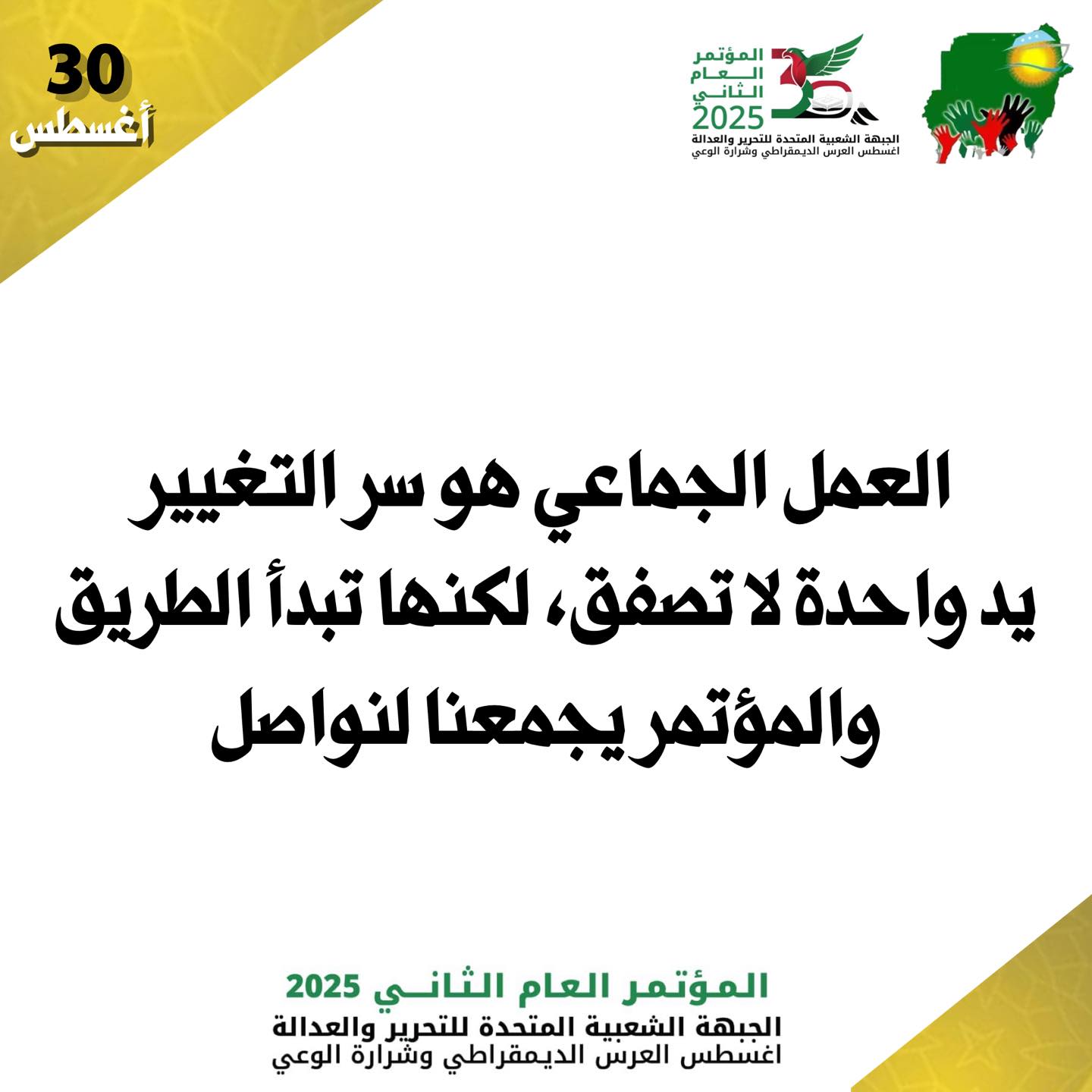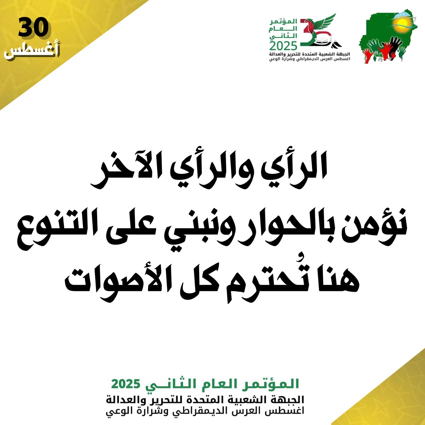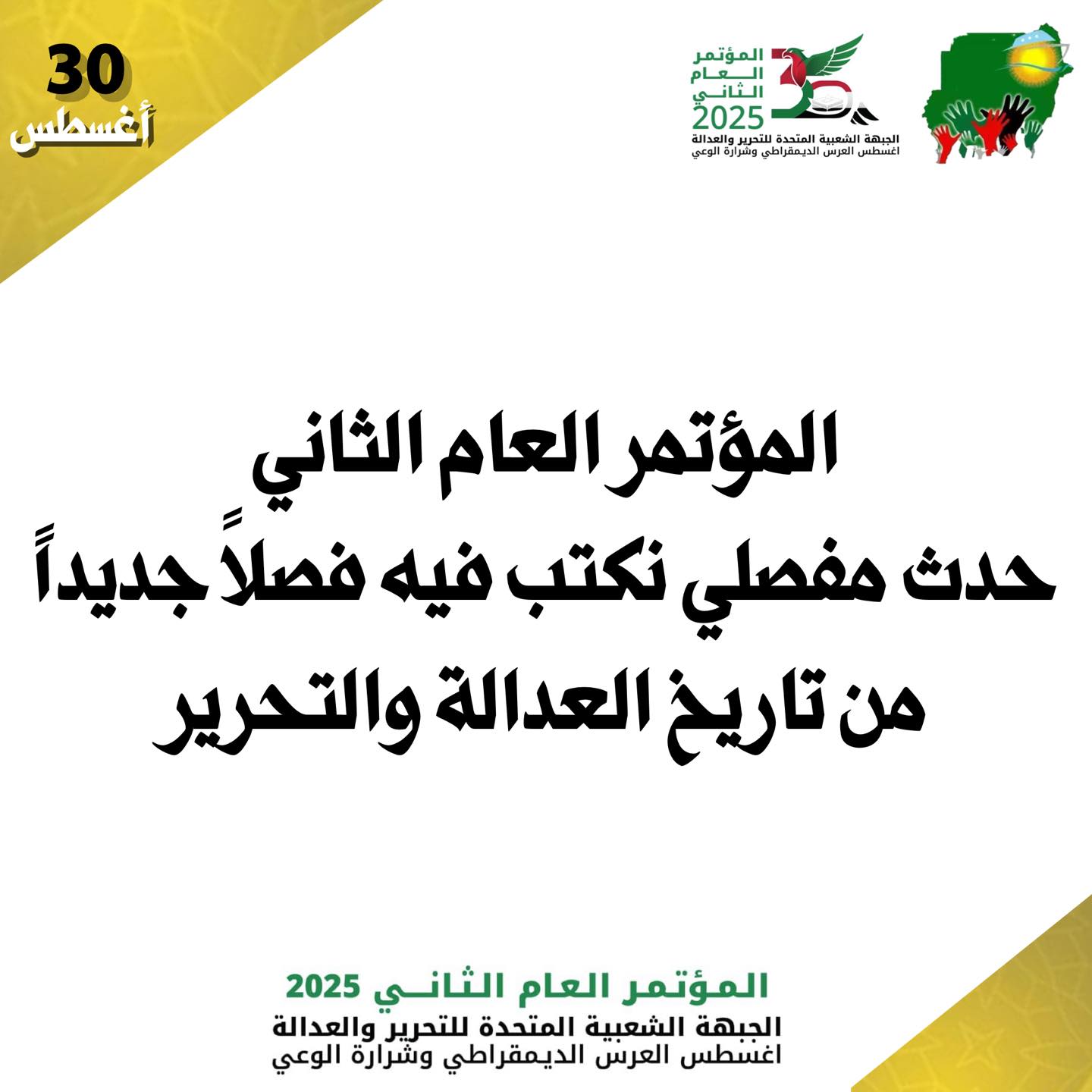 الاورطة 30اغسطس المؤتمر العام الثاني للجبهة الشعبية المتحدة للتحرير والعدالدالة By null Published August 26, 2025 Share SHARE Facebook Twitter Pinterest LinkedIn[ad_1] 30اغسطس المؤتمر العام الثاني للجبهة الشعبية المتحدة للتحرير والعدالدالة [ad_2] Source Facebook Twitter Pinterest LinkedIn Share This Article Facebook Twitter Email Print Previous Article البحصل دا كلو على بعضو كلام فارغ ساي وما ماشي لقدام شبر ، عشان كدا نصيحتي ليكم م… Next Article هل تَجَرَّأ الدعم السريع على اختراق مكتب القائد العام عبد الفتاح البرهان؟ وهل لر… Leave a Comment Leave a Reply Cancel replyYour email address will not be published. Required fields are marked *Comment * Name * Email * Website Save my name, email, and website in this browser for the next time I comment. Δ SearchSearchRecent Postsأكرمنا الله صباح اليوم الأحد بلقاء إخوةٍ كرام، على ضفة النيل الأزرق، حيث شاي الش… أعلن بنك السودان المركزي في منشور إدارة السياسات رقم (2025/15) رفع الاحتكار عن ا… ندوة بعنوان: القانون الدولي والسيادة الوطنية قراءة في موقف السودان من لجنة تقصي … والي نهر النيل تستقبل وزير الموارد البشرية والرعاية الاجتماعية الوزير يشيد بالأ… كامل ادريس: رئيس اللجنة السياسية لمؤسسات الدولة السودانية. Recent CommentsNo comments to show.