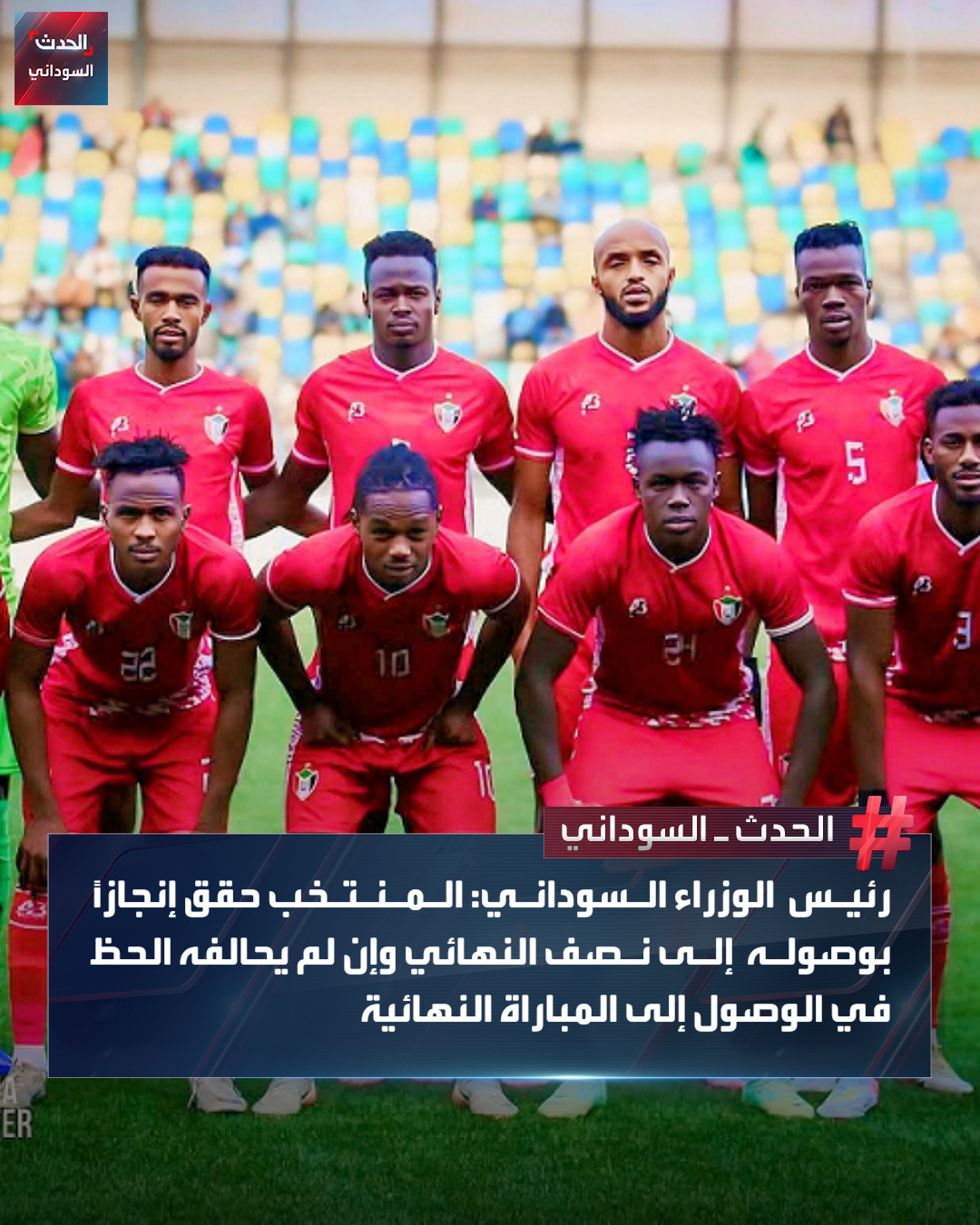 أعرب رئيس الوزراء د. كامل إدريس عن تقدير حكومة الأمل والشعب السوداني للمنتخب الوطني بعد وصوله إلى نصف نهائي بطولة الأمم الأفريقية للمحليين (شان).