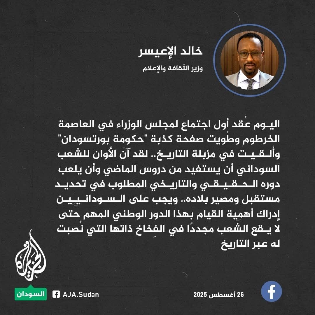 ■ رحلة سعيدة للوزير الإعيسر، البلد تحتاجك، إما وزيرًا ناطقًا أو إعلاميًا حرًا بلا قيود.