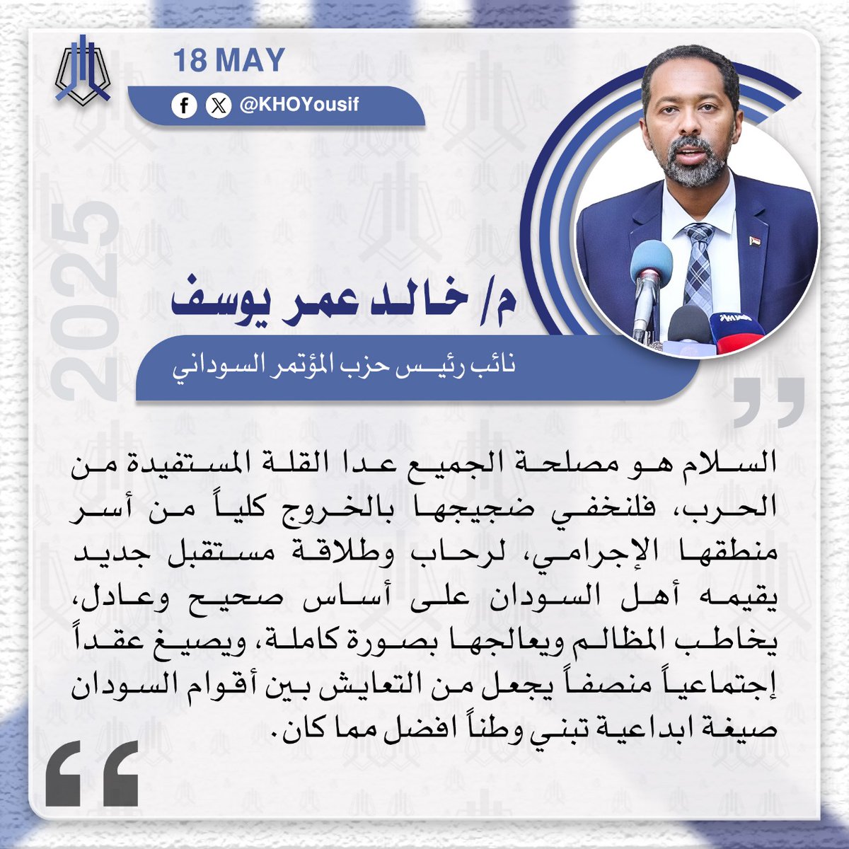 م.خالد عمر يوسف @KHOYousif نائب رئيس الحزب والقيادي بالتحالف المدني الديمقراطي لقوى الثورة “صمود”