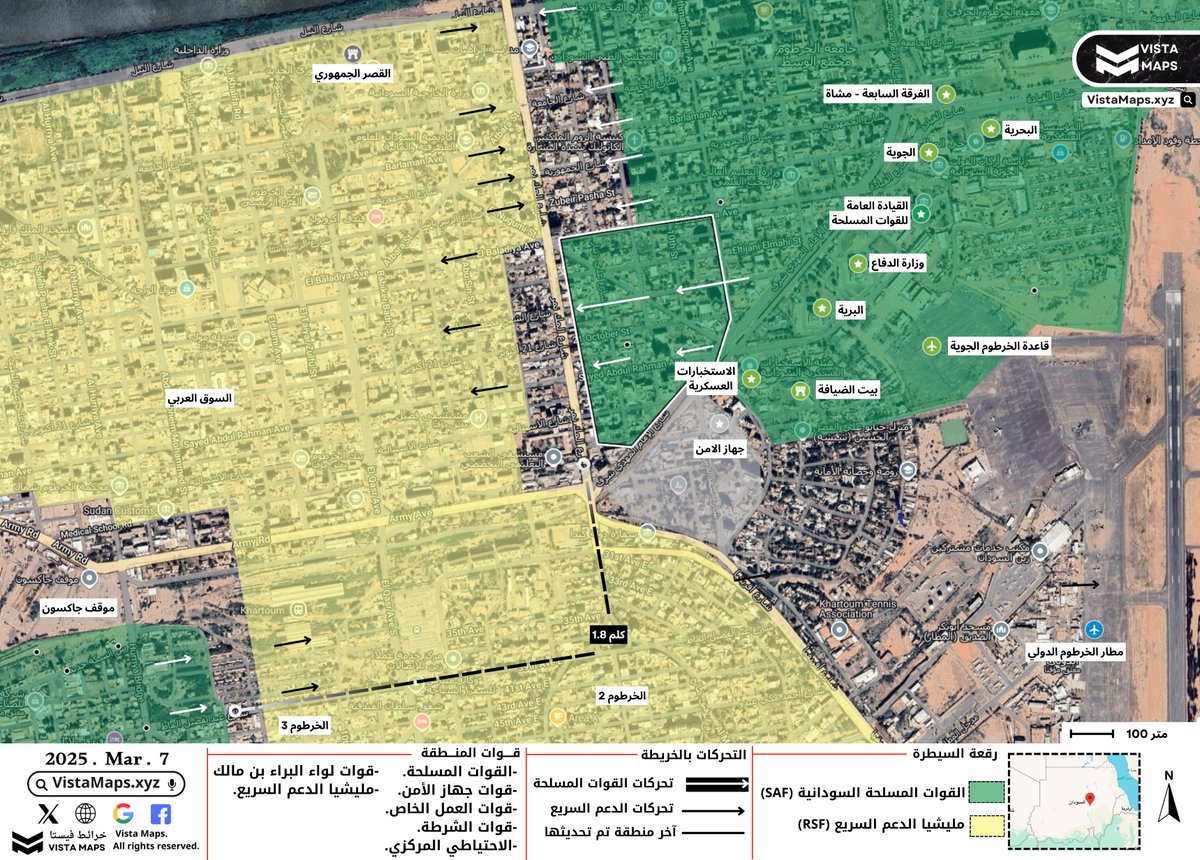 – القوات المسلحة تتقدم من القيادة العامة وتستحوذ على عدة مبانٍ بما في ذلك رئاسة الشرطة الأمنية، بالإضافة إلى شارع علي دينار.