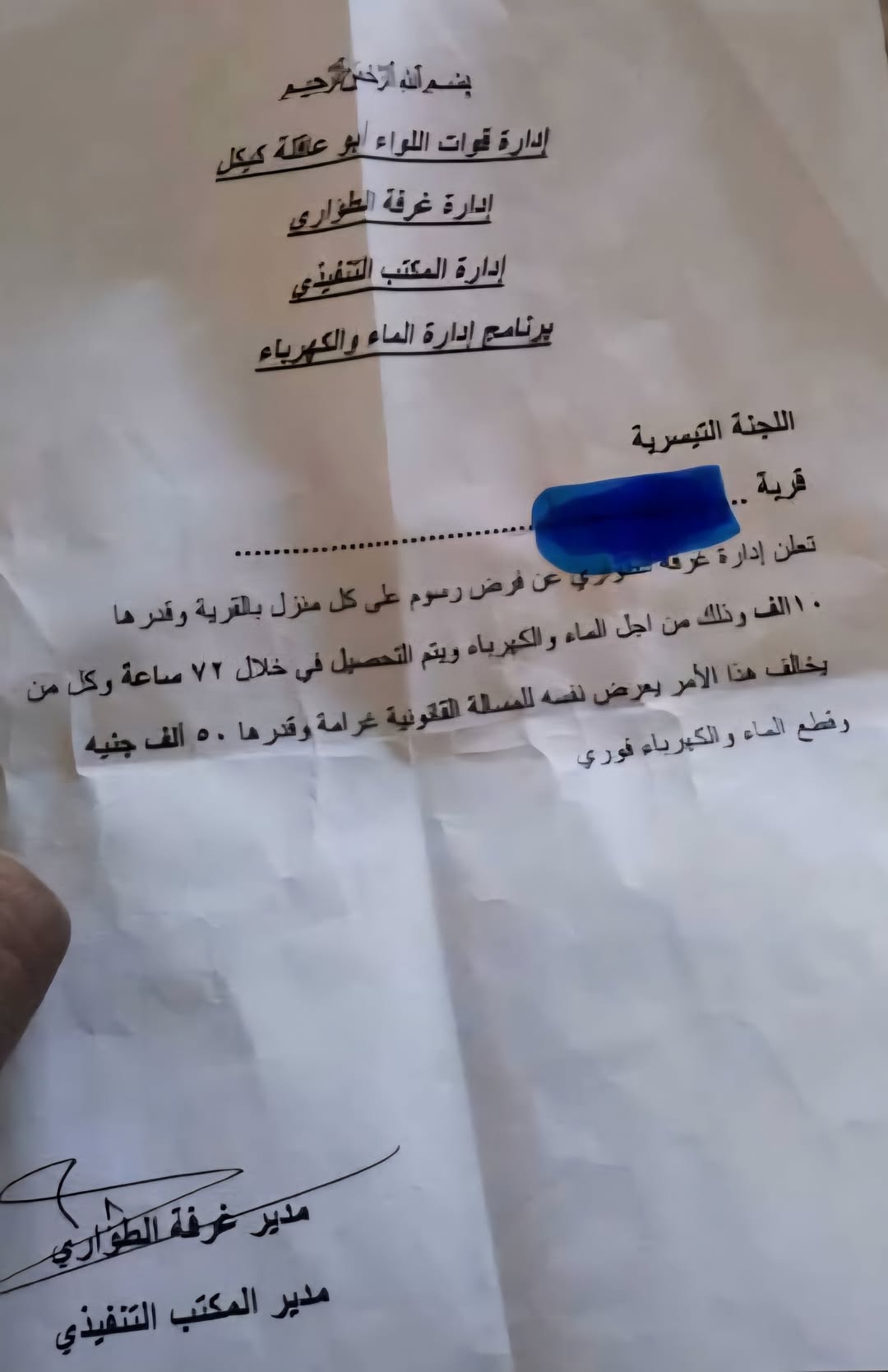 تفرض على كل بيت في القرية مبلغ ( 10 ألف جنيه ) مقابل خدمة الموية والكهرباء..