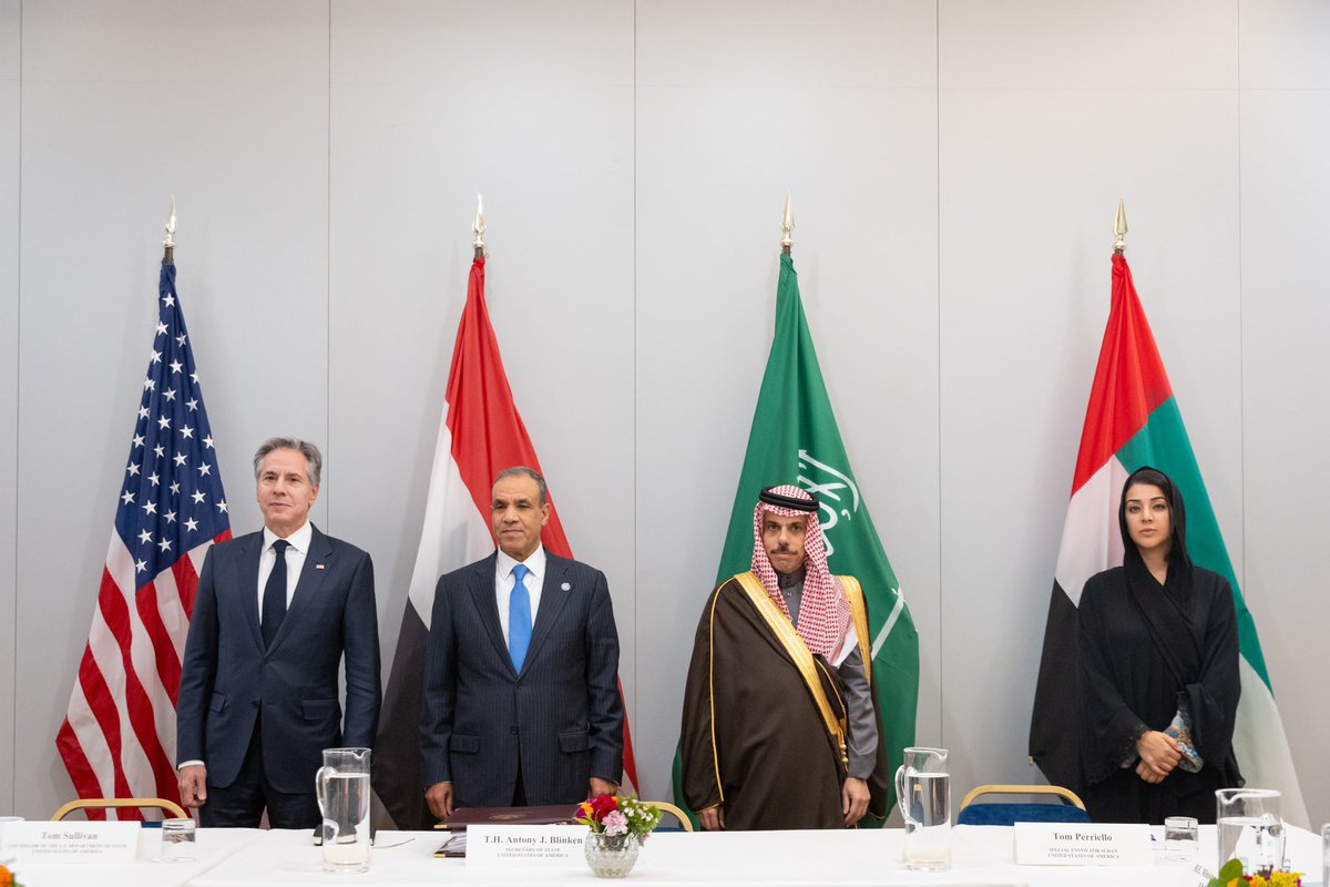 1️⃣ الصورة المرفقة هي لإجتماع عقد مؤخراً في إيطاليا لوزراء خارجية بعض الدول #العربية مع وزير الخارجية الأمريكي “أنتوني بلينكن” لحل الملف السوداني، ذلك الحل الذي كان ومنذ اليوم الأول للأزمة السودانية موقوف على ضبط الإيقاع الأمريكي متى ما أرادت #واشنطن ذلك.