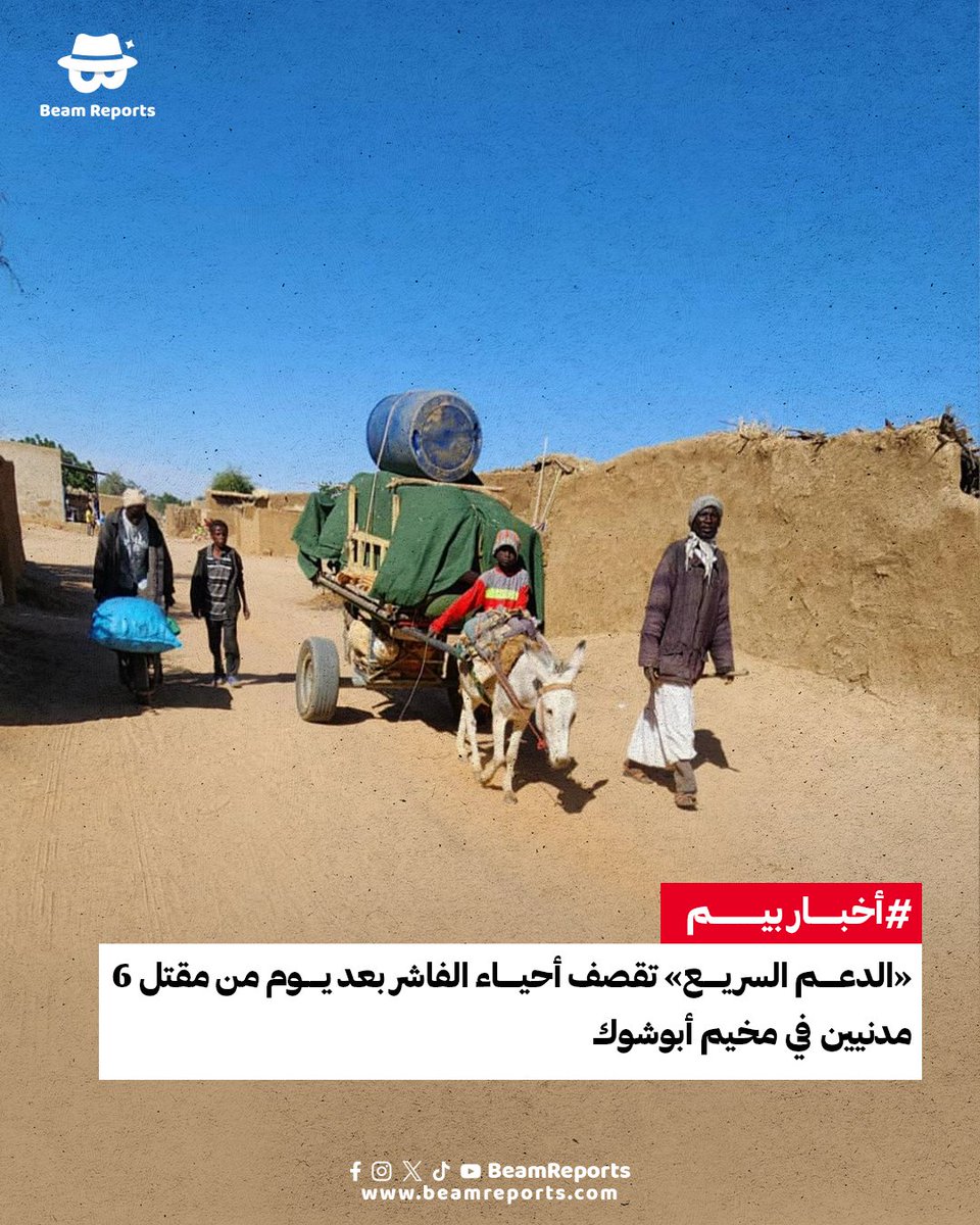 قصفت قوات الدعم السريع بالمدفعية، الجمعة، الأحياء السكنية في مدينة الفاشر، حسبما أكدت لجان المقاومة في المدينة وذلك بعد يوم من قتلها 6 مدنيين في مخيم أبوشوك.
