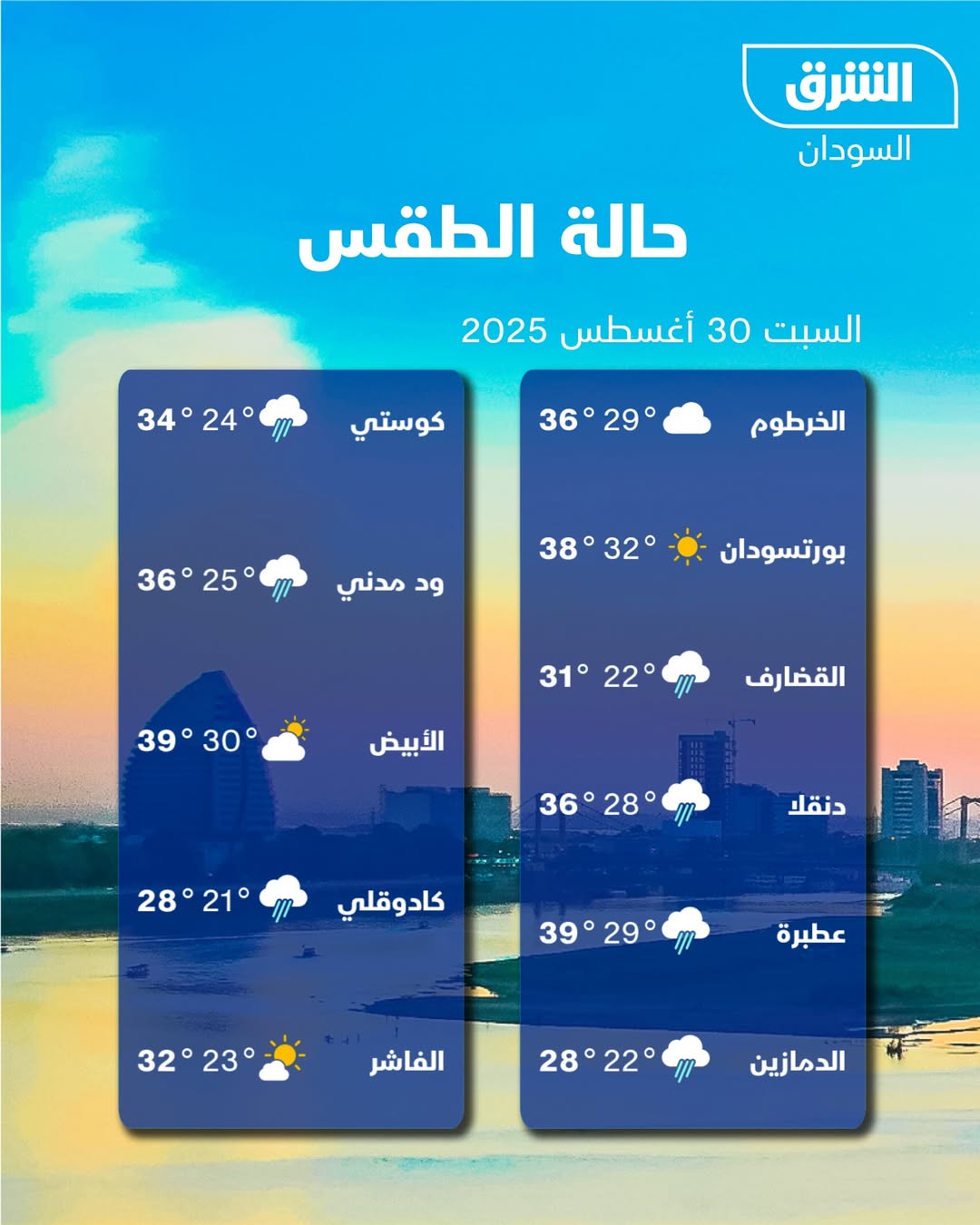 قناة الشرق حالة #الطقس في #السودان اليوم #الشرق_السودان By null Published August 30, 2025 Share SHARE Facebook Twitter Pinterest LinkedIn[ad_1] حالة #الطقس في #السودان اليوم #الشرق_السودان [ad_2] Source Facebook Twitter Pinterest LinkedIn Share This Article Facebook Twitter Email Print Previous Article تم التصدي لها عبر المضادات الأرضية للجيش. #Sudan_War_Updates… Next Article هجوم للمقاومة في عدة مواقع بنفس الوقت.. كيف شنت كتائب القسام هجماتها على قوات ال… Leave a Comment Leave a Reply Cancel replyYour email address will not be published. Required fields are marked *Comment * Name * Email * Website Save my name, email, and website in this browser for the next time I comment. Δ SearchSearchRecent Postsأكرمنا الله صباح اليوم الأحد بلقاء إخوةٍ كرام، على ضفة النيل الأزرق، حيث شاي الش… أعلن بنك السودان المركزي في منشور إدارة السياسات رقم (2025/15) رفع الاحتكار عن ا… ندوة بعنوان: القانون الدولي والسيادة الوطنية قراءة في موقف السودان من لجنة تقصي … والي نهر النيل تستقبل وزير الموارد البشرية والرعاية الاجتماعية الوزير يشيد بالأ… كامل ادريس: رئيس اللجنة السياسية لمؤسسات الدولة السودانية. Recent CommentsNo comments to show.