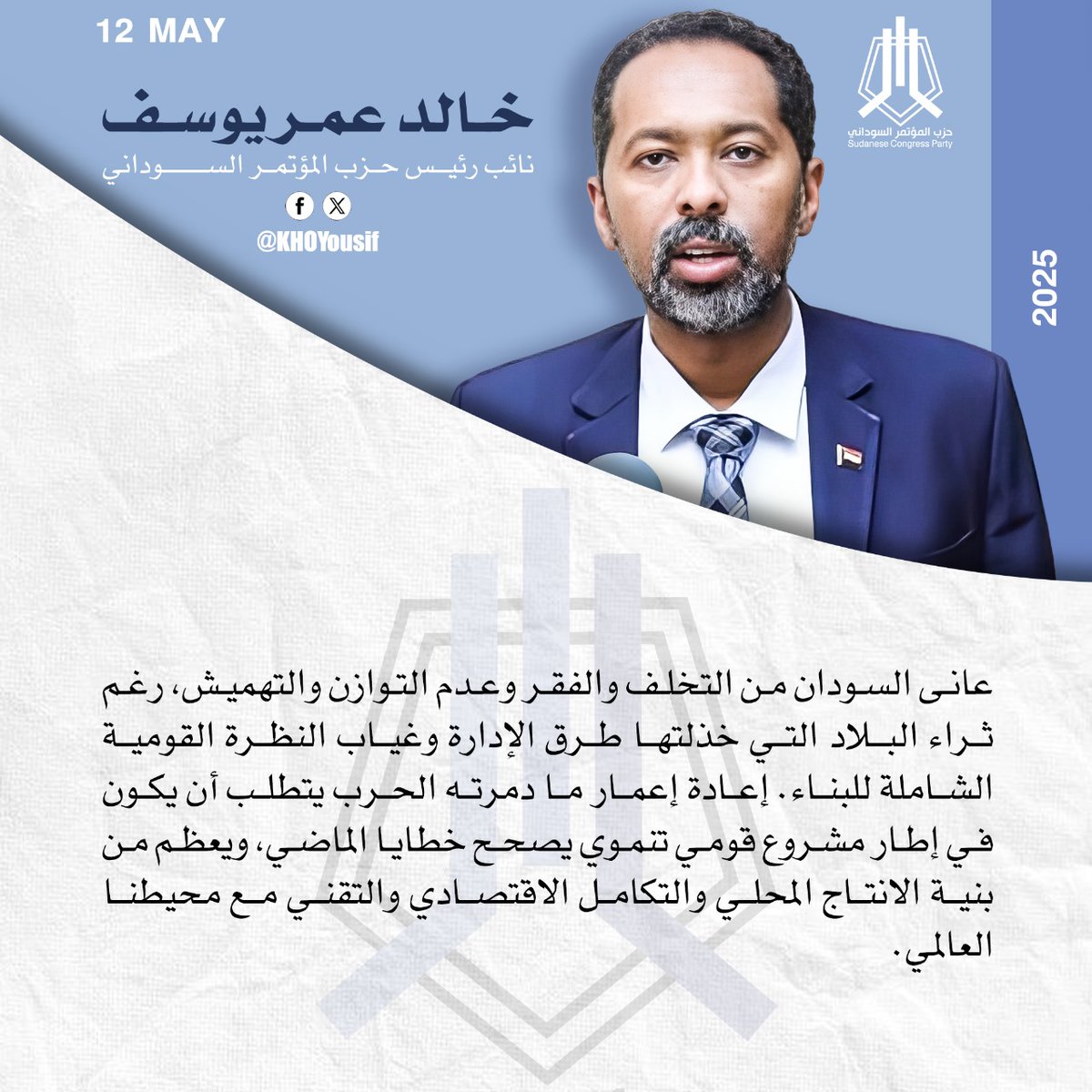 م. خالد عمر يوسف @KHOYousif نائب رئيس الحزب والقيادي بالتحالف المدني الديمقراطي لقوى الثورة “صمود”