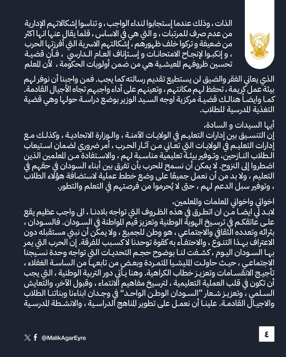 مالك عقار كلمتي اليوم في ملتقى وزراء التربية ومديري التعليم بالولايات. حفظ الله السودان و… By null Published August 31, 2025 Share SHARE Facebook Twitter Pinterest LinkedIn[ad_1] كلمتي اليوم في ملتقى وزراء التربية ومديري التعليم بالولايات. حفظ الله السودان وشعب السودان ١/٢ [ad_2] Source by Malik Agar Eyre | مالك عقار اير Facebook Twitter Pinterest LinkedIn Share This Article Facebook Twitter Email Print Previous Article Maine – 1 More Hour! Polls are open until 8:00 PM local. If you are in line by… Next Article رئيس مجلس السيادة الانتقالي يعتمد قرار مجلس الوزراء بتعيين د.التهامي الزين حجر … Leave a Comment Leave a Reply Cancel replyYour email address will not be published. Required fields are marked *Comment * Name * Email * Website Save my name, email, and website in this browser for the next time I comment. Δ SearchSearchRecent Postsأكرمنا الله صباح اليوم الأحد بلقاء إخوةٍ كرام، على ضفة النيل الأزرق، حيث شاي الش… أعلن بنك السودان المركزي في منشور إدارة السياسات رقم (2025/15) رفع الاحتكار عن ا… ندوة بعنوان: القانون الدولي والسيادة الوطنية قراءة في موقف السودان من لجنة تقصي … والي نهر النيل تستقبل وزير الموارد البشرية والرعاية الاجتماعية الوزير يشيد بالأ… كامل ادريس: رئيس اللجنة السياسية لمؤسسات الدولة السودانية. Recent CommentsNo comments to show.