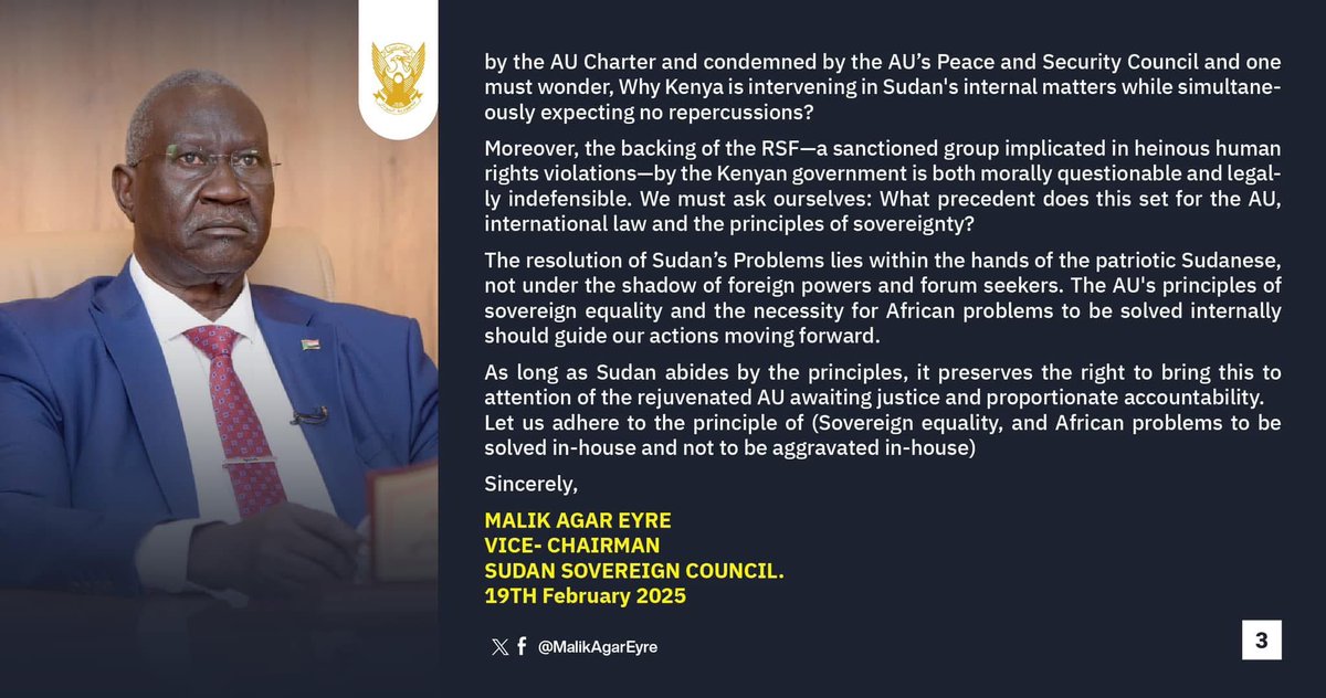 مالك عقار An Open Letter to @WilliamsRuto … By null Published August 31, 2025 Share SHARE Facebook Twitter Pinterest LinkedIn[ad_1] An Open Letter to @WilliamsRuto [ad_2] Source by Malik Agar Eyre | مالك عقار اير Facebook Twitter Pinterest LinkedIn Share This Article Facebook Twitter Email Print Previous Article استمرار حملات إصحاح البيئة بمحلية جبل أولياء ضمن برامج تهيئة العاصمة الخرطوم 3… Next Article وزير التعليم العالي وأمين عام صندوق رعاية الطلاب يعزون أسرة الشهيد أمين حسن هارو… Leave a Comment Leave a Reply Cancel replyYour email address will not be published. Required fields are marked *Comment * Name * Email * Website Save my name, email, and website in this browser for the next time I comment. Δ SearchSearchRecent Postsأكرمنا الله صباح اليوم الأحد بلقاء إخوةٍ كرام، على ضفة النيل الأزرق، حيث شاي الش… أعلن بنك السودان المركزي في منشور إدارة السياسات رقم (2025/15) رفع الاحتكار عن ا… ندوة بعنوان: القانون الدولي والسيادة الوطنية قراءة في موقف السودان من لجنة تقصي … والي نهر النيل تستقبل وزير الموارد البشرية والرعاية الاجتماعية الوزير يشيد بالأ… كامل ادريس: رئيس اللجنة السياسية لمؤسسات الدولة السودانية. Recent CommentsNo comments to show.