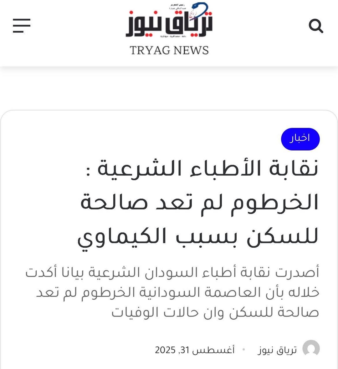 ما تُسمي نفسها “نقابة الأطباء” لا هي نقابة ولا علاقة لها بالطب، بل مجرد لافتة كاذبة تحاول أن تستر بها خطها السياسي المعلوم، فتلصق بنفسها صفة “الشرعية” لأنها تدرك أن الناس لا يصدقونها، فتتسول ما تفتقده. ويظهر هذا الخط الجنجـ.ويدي الرخيص، الذي يحرّكه المدعو علاء نقد، مدى انزعاجه من عودة العديد من المواطنين إلى بيوتهم طواعية، وانعقاد مجلس الوزراء في قلب الخرطوم، واسترداد العاصمة عنوة من التمرد المهزوم، أما حديثهم عن “مخلفات كيماوية”، فهو جهل مفضوح، لأن مثل هذه القضايا تحتاج لخبراء مختصين وفِرق علمية للتحقيق والفحص والتحليل، لا لشائعات رخيصة يطلقها مرتزقة وواجهات إعلامية مأجورة.