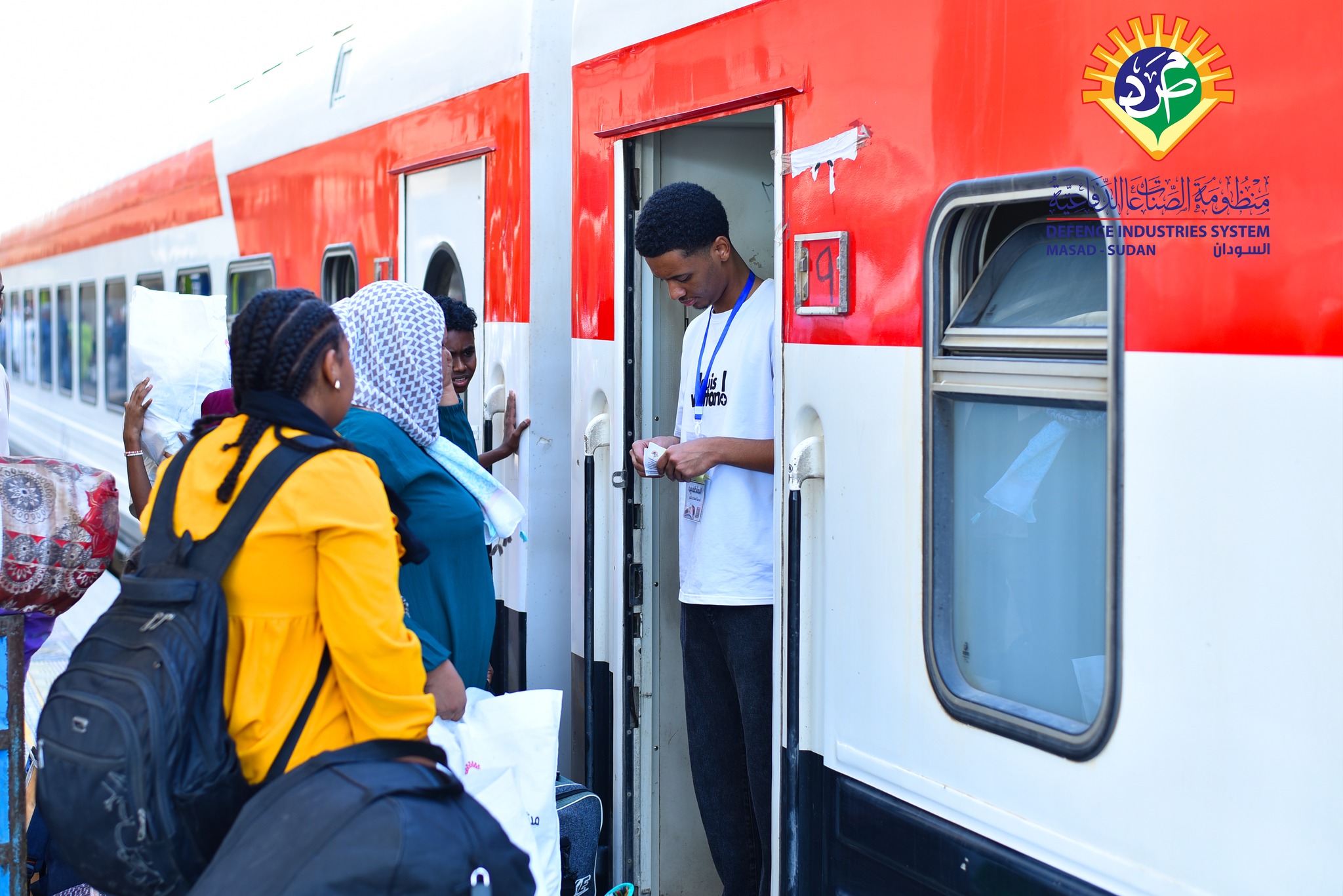 غادر القطار العاشر من محطة رمسيس بالقاهرة، وعلى متنه أكثر من 1200 مواطن سوداني، متجهاً إلى محطة السد العالي في أسوان، وذلك ضمن مشروع العودة الطوعية المجانية الذي تنظمه منظومة الصناعات الدفاعية السودانية.