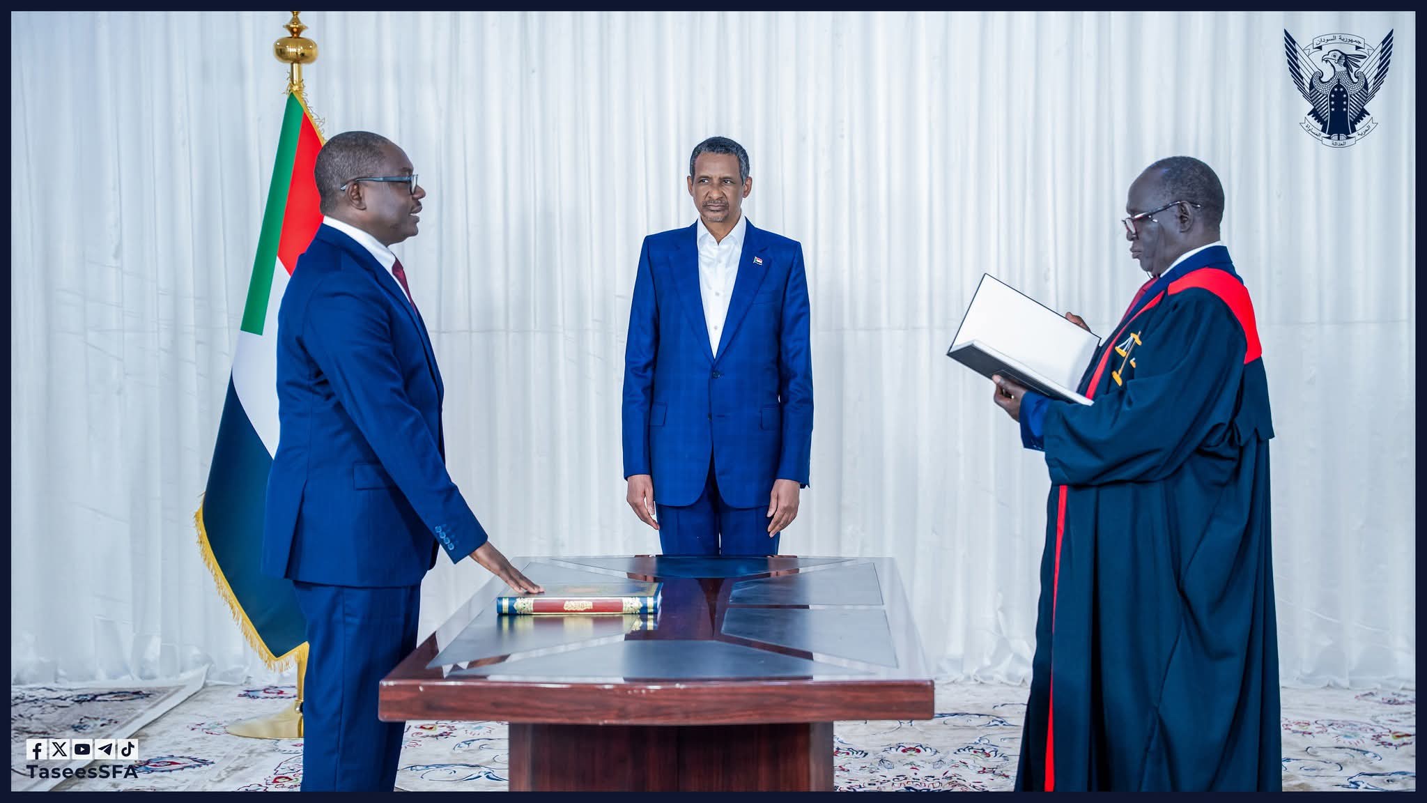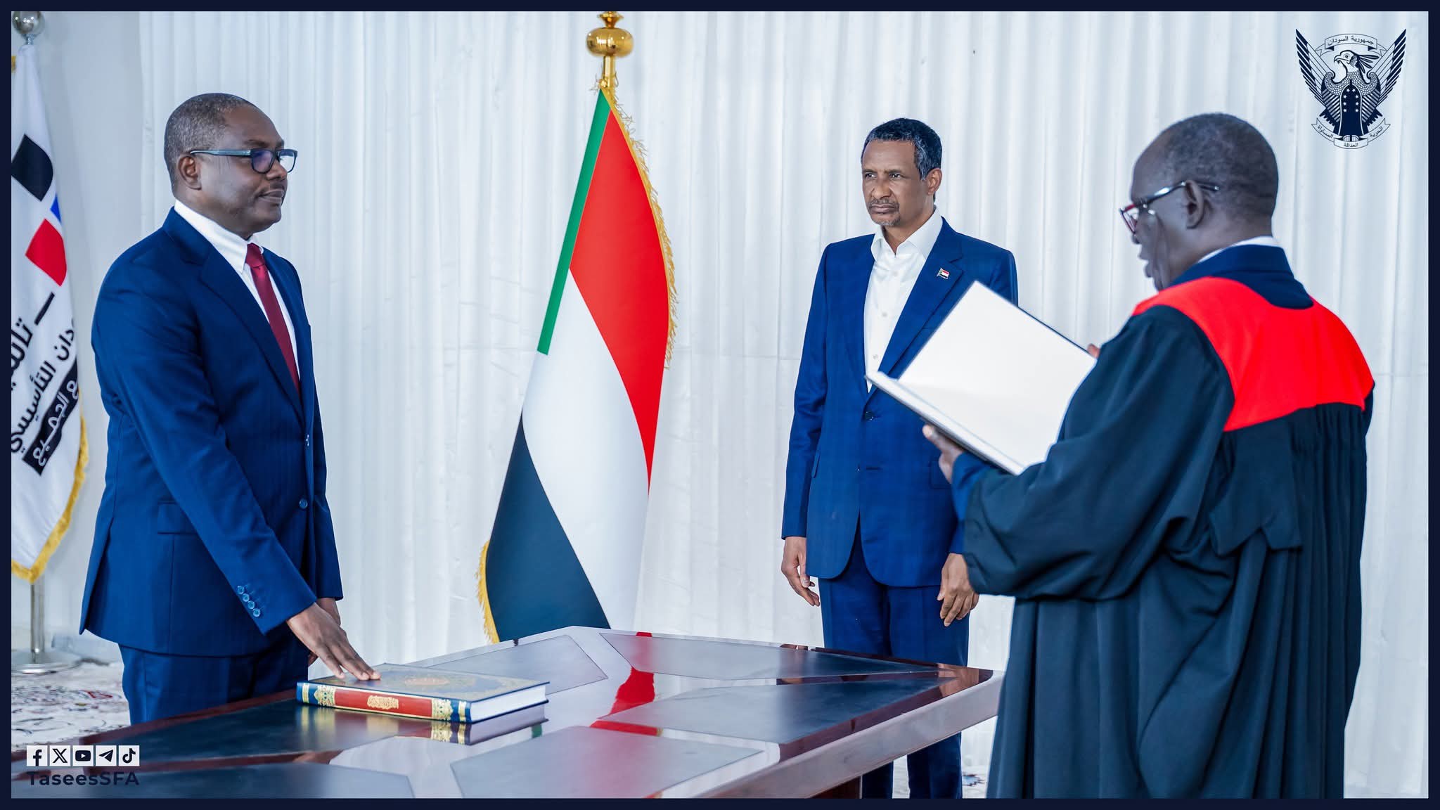 أدى السيد محمد حسن عثمان التعايش اليوم الاحد 31 أغسطس 2025 بعاصمة جنوب دارفور – نيالا، اليمين الدستورية رئيساً لمجلس الوزراء وذلك خلال مراسم رسمية جرت أمام رئيس المجلس الرئاسي الفريق أول محمد حمـ..ـدان دقلـ,,و، ورئيس القضاء مولانا رمضان إبراهيم شميلا.