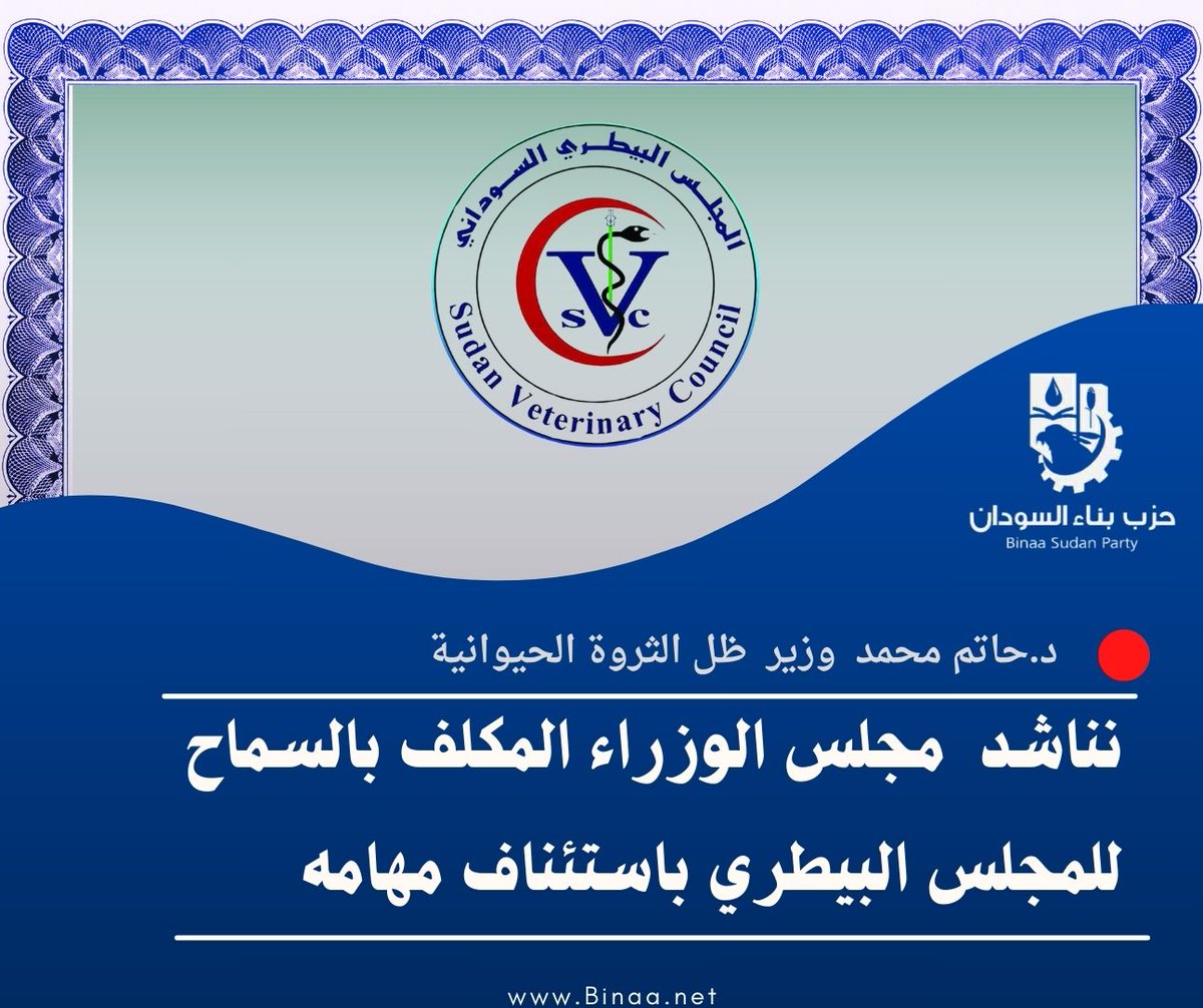 تتابع حكومة الظل بحزب بناء السودان بقلقٍ بالغٍ التأخير الحاصل في إصدار خطاب من مجلس الوزراء يسمح للمجلس البيطري السوداني باستئناف مهامه الوظيفية، خاصة في ظل العودة التدريجية لأغلب الوزارات للعمل في ولاية البحر الأحمر (مدينة بورتسودان) بعد توقف طويل بسبب الحرب.