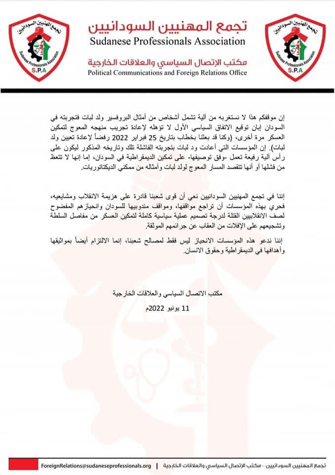 بالإشارة لخطابكم الموجه لنا بلا تاريخ أو رقم وبلا عنوان أيضاً وطلبكم لنا لتحديد أشخاص محوريين للمشاركة فيما أسميتموه بالاجتماع التقني