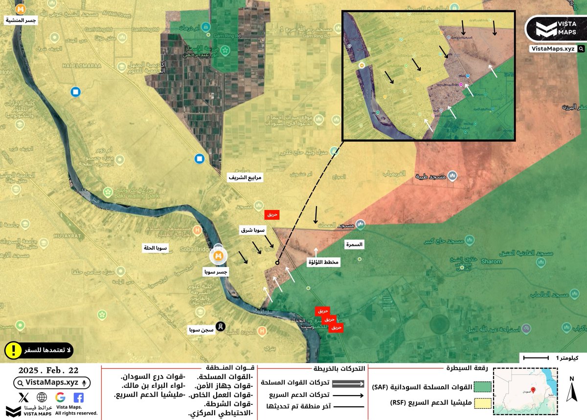 مع انهيار دفاعاتها في ولاية الجزيرة حتى العيلفون عززت المليشيا تحصيناتها في سوبا شرق ونجحت في الصمود أمام هجمتين للقوات المسلحة ودرع السودان وجهاز الأمن كان آخرها اليوم دون تحقيق اختراق في الدفاعات الاساسية.