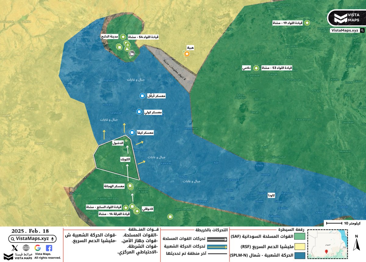 – لتحقيق ذلك تستهدف القوات المسلحة معسكر كُرقُل وهو المعسكر الرئيسي للحركة الشعبية في المنطقة، إضافة إلى معسكرات فرعية مثل كولي وكيقا التي تمثل أبرز نقاط دفاع الحركة الشعبية على الطريق القومي بين مدينتي الدلنج وكادوقلي.