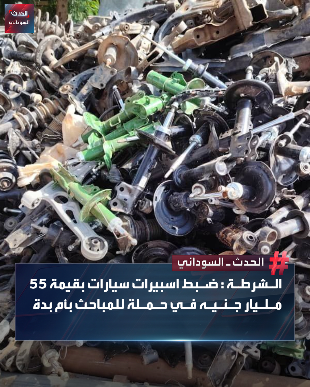 أعلنت شرطة ولاية الخرطوم عن ضبط اسبيرات سيارات بمحلية أم بدة بولاية الخرطوم، تقدر قيمتها بـ55 مليار جنيه، في حملة واسعة النطاق شنتها شرطة مباحث أم درمان.