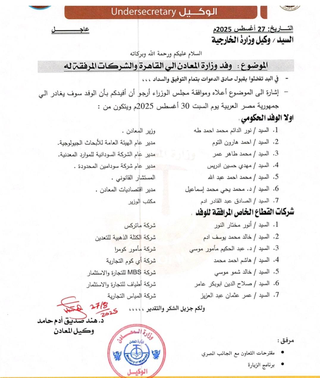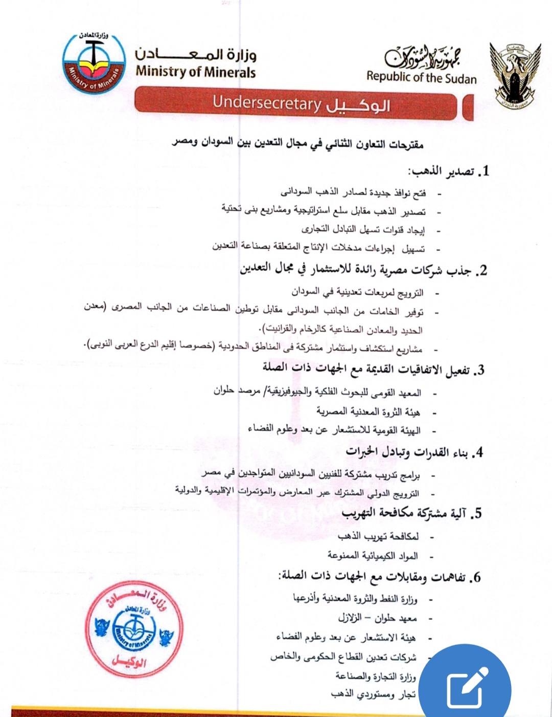 ■ في تلك الزيارة كان لوزير المعادن رأيٌ آخر مخالف لتوجيهات رئيس الوزراء. ومن رأيه أن يتم التأني في التوجيه بحصرية تصدير الذهب لبنك السودان، لكن د. كامل أصرّ على فرض توجيهاته.