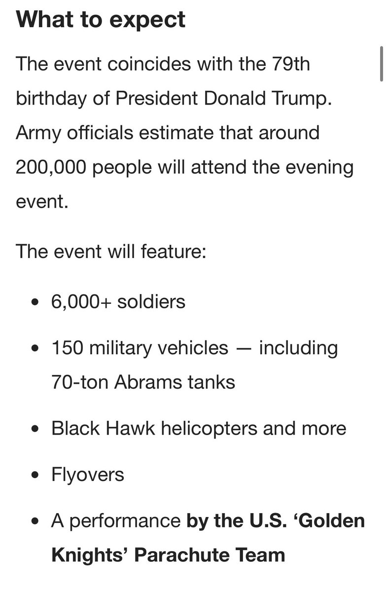 📍في ظل التوترات الخطيرة والمتصاعدة في المنطقة، تستعد واشنطن ليوم حافل غدا السبت يشهد عرضا” عسكريا” ضخما” للاحتفال بعيد الجيش ال 250 (يتزامن مع عيد #ترمب ال 79)…