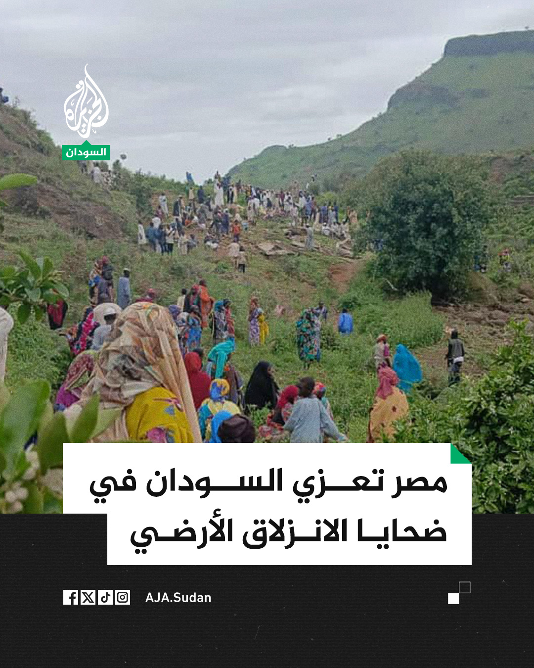 وزارة الخارجية المصرية تعرب عن خالص تعازيها في ضحايا الانزلاقات الأرضية المدمرة التي وقعت في إقليم دارفور، مؤكدة تضامن مصر الكامل مع حكومة السودان وقيادته وشعبه الشقيق في هذا المصاب الأليم